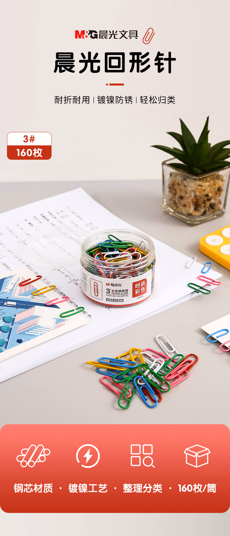 > 晨光(M&G)文具3#彩色防锈回形针 办公用品家用多功能曲别针 100枚装ABS91699开学必备