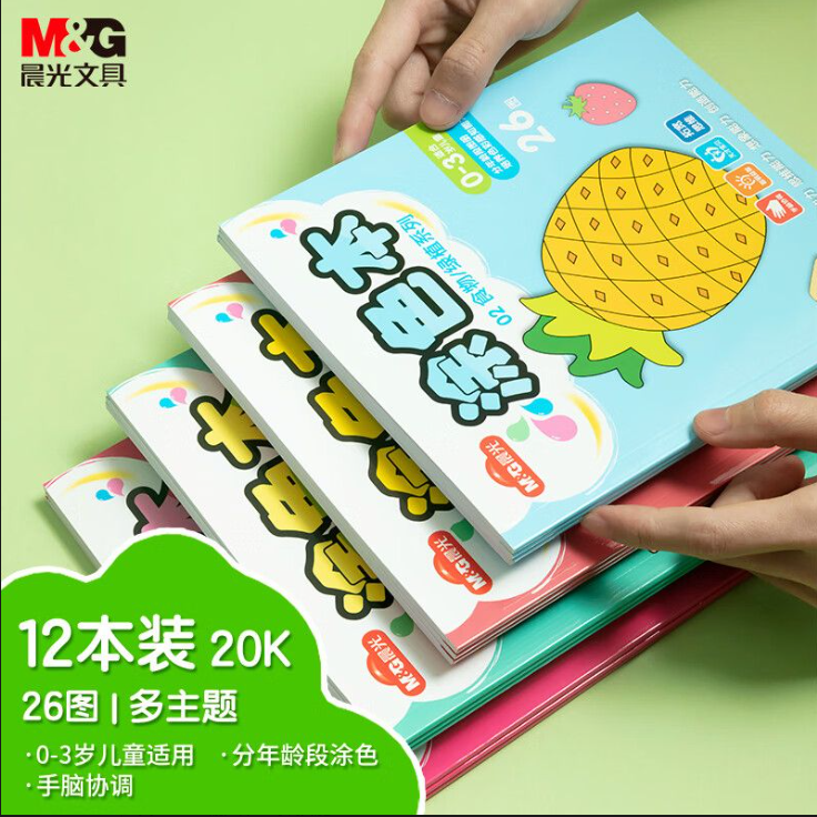 晨光(M&G)文具20K/168页/26图 学生启蒙涂色本 幼儿园填色14页/本动物系列12本装儿童毕业礼物礼盒DIY手工