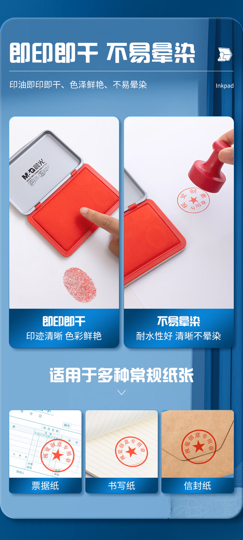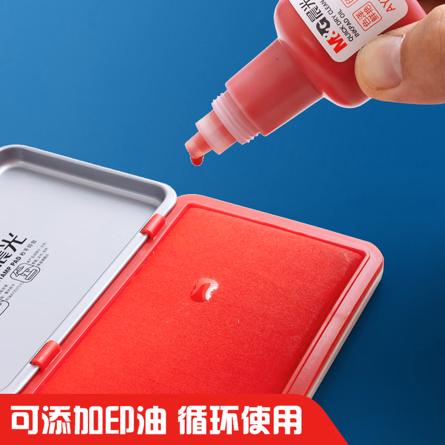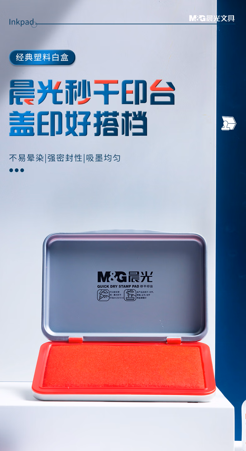 > 晨光(M&G)文具120*80mm金属方形中号秒干印台印泥 财务专用 办公用品 红色单个装AYZ97517