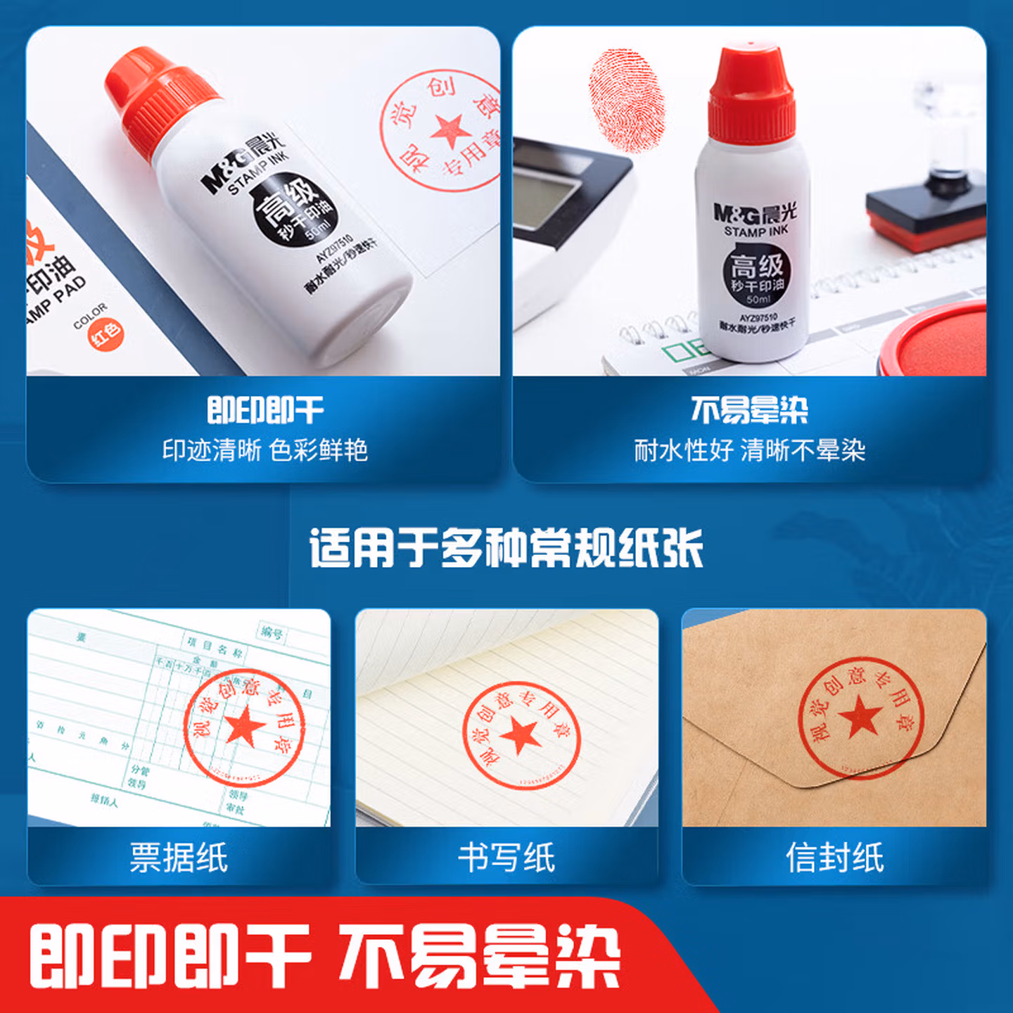 > 晨光(M&G)文具50ml财务秒干印油 办公印章专用 办公用品 红色 单瓶装AYZ97510