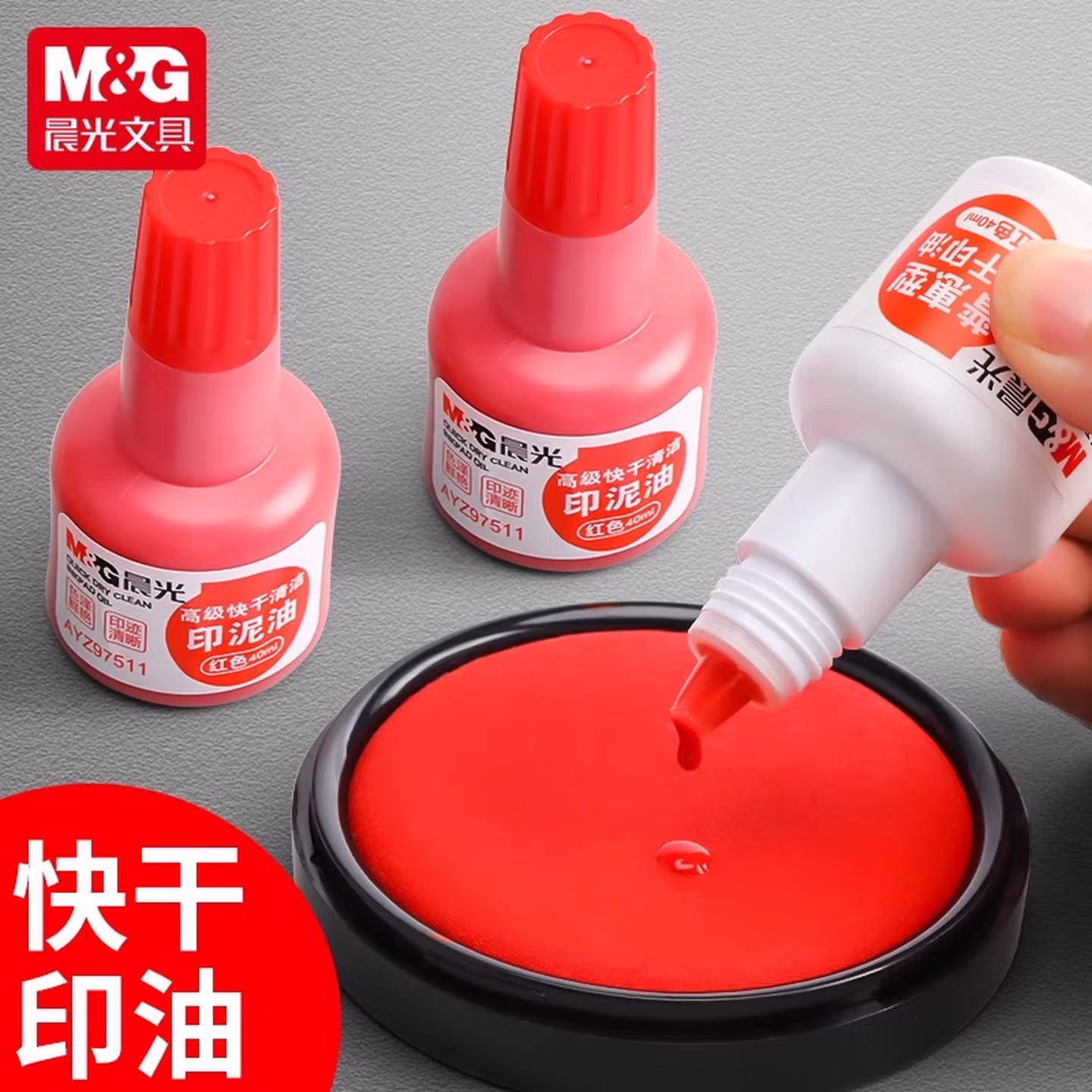 晨光(MG)晨光财务印章印泥快干清洁印油 原子印油光敏加印蓝色补充液发票签字盖章 财务用品 秒干印油 - 1瓶 红