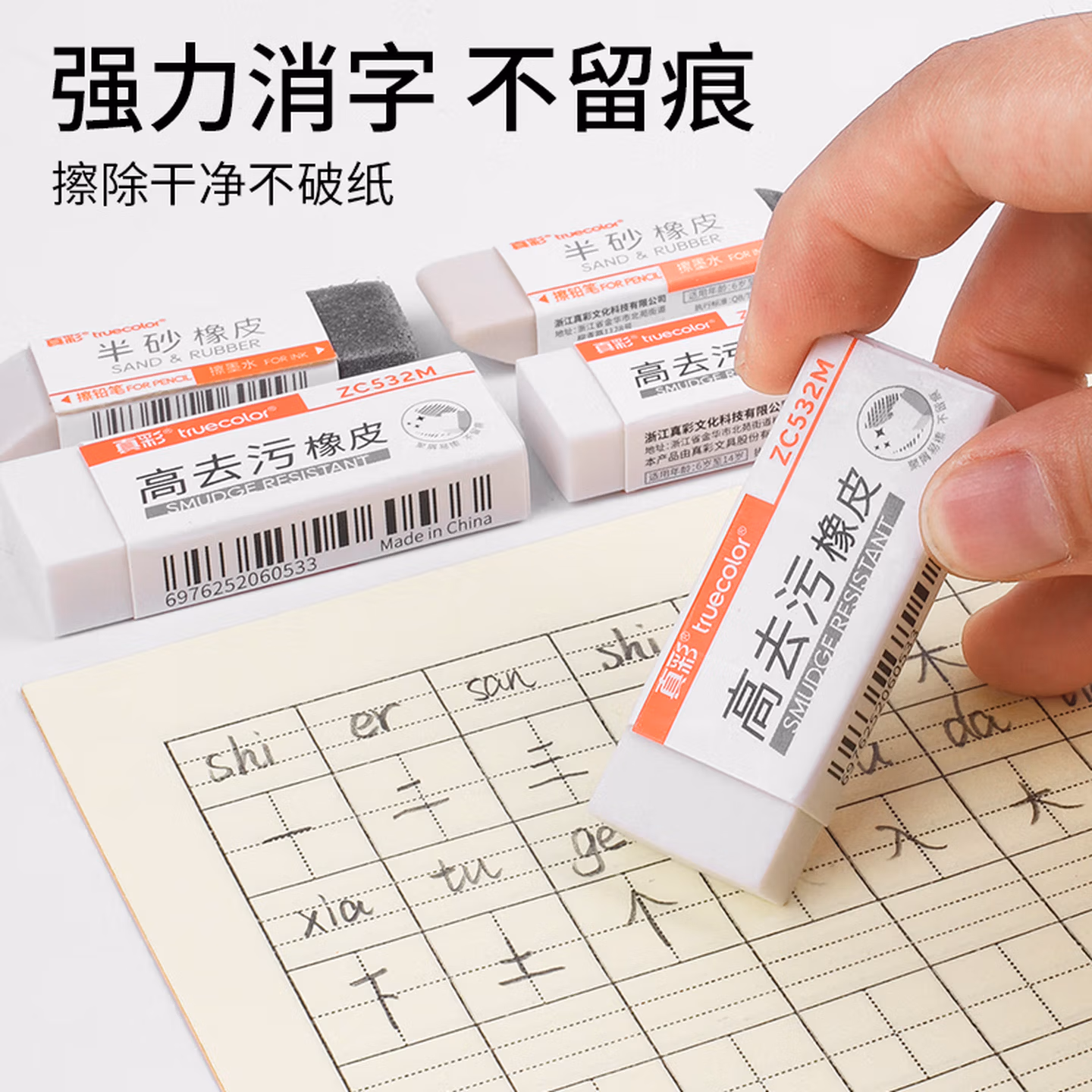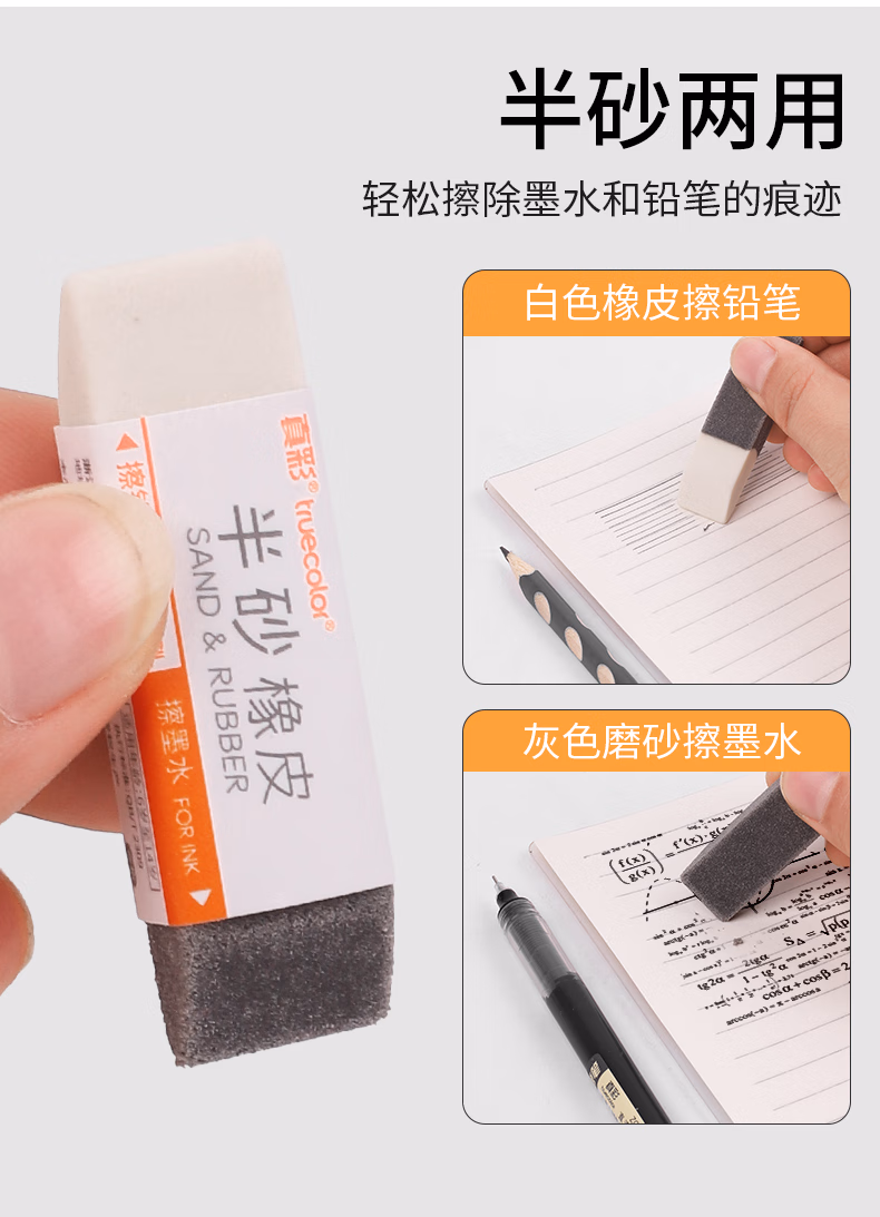 > 真彩(TRUECOLOR)12块超洁净橡皮擦 适用活动铅笔 高光美术绘图橡皮易擦少屑 中考高考学生考试简约办公 小号ZC532S