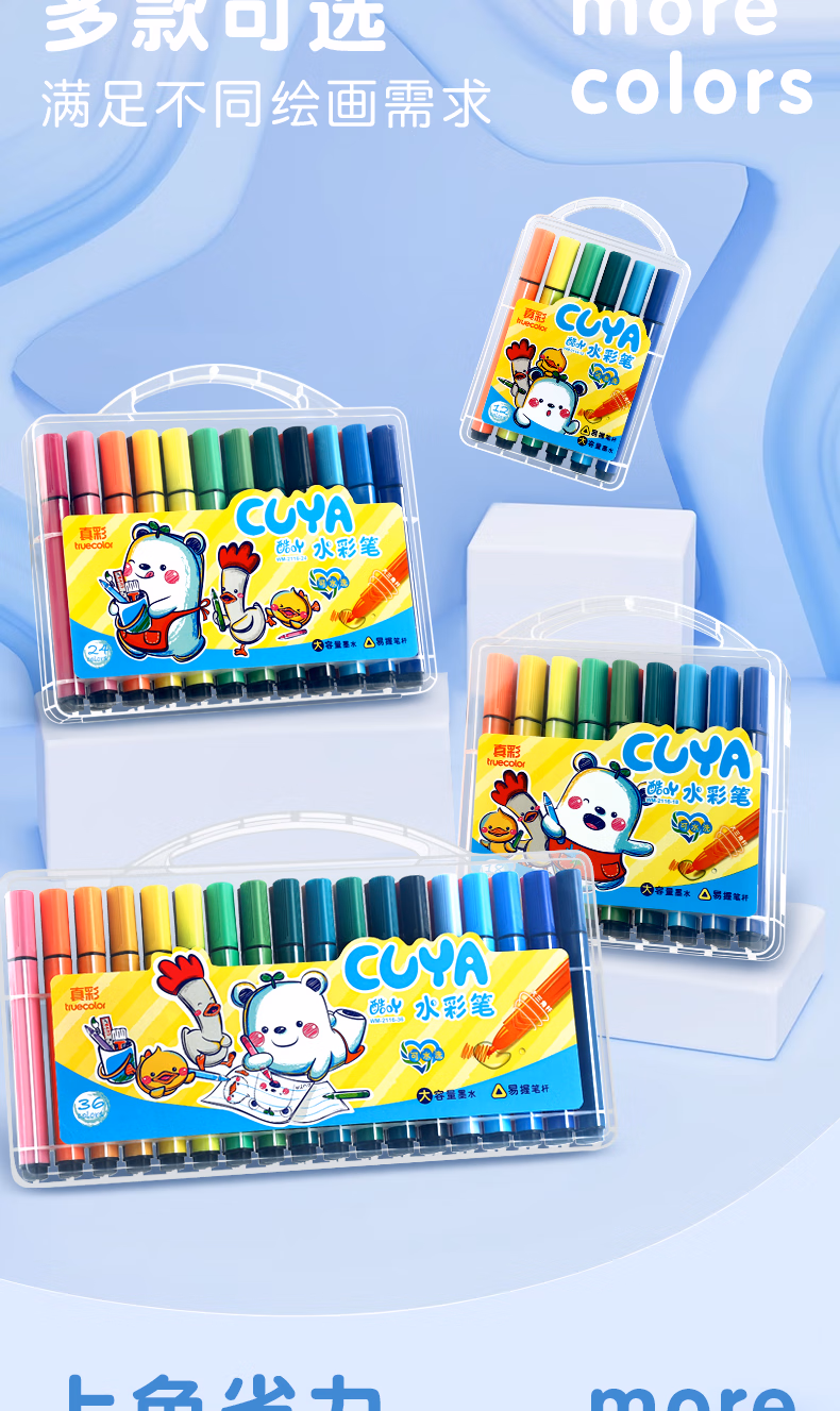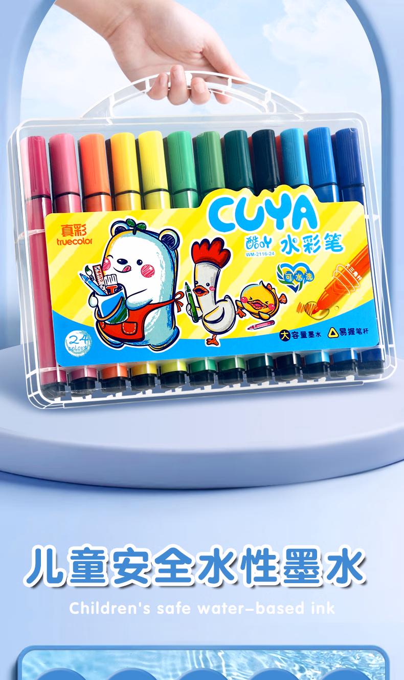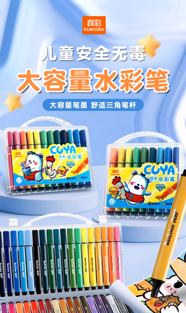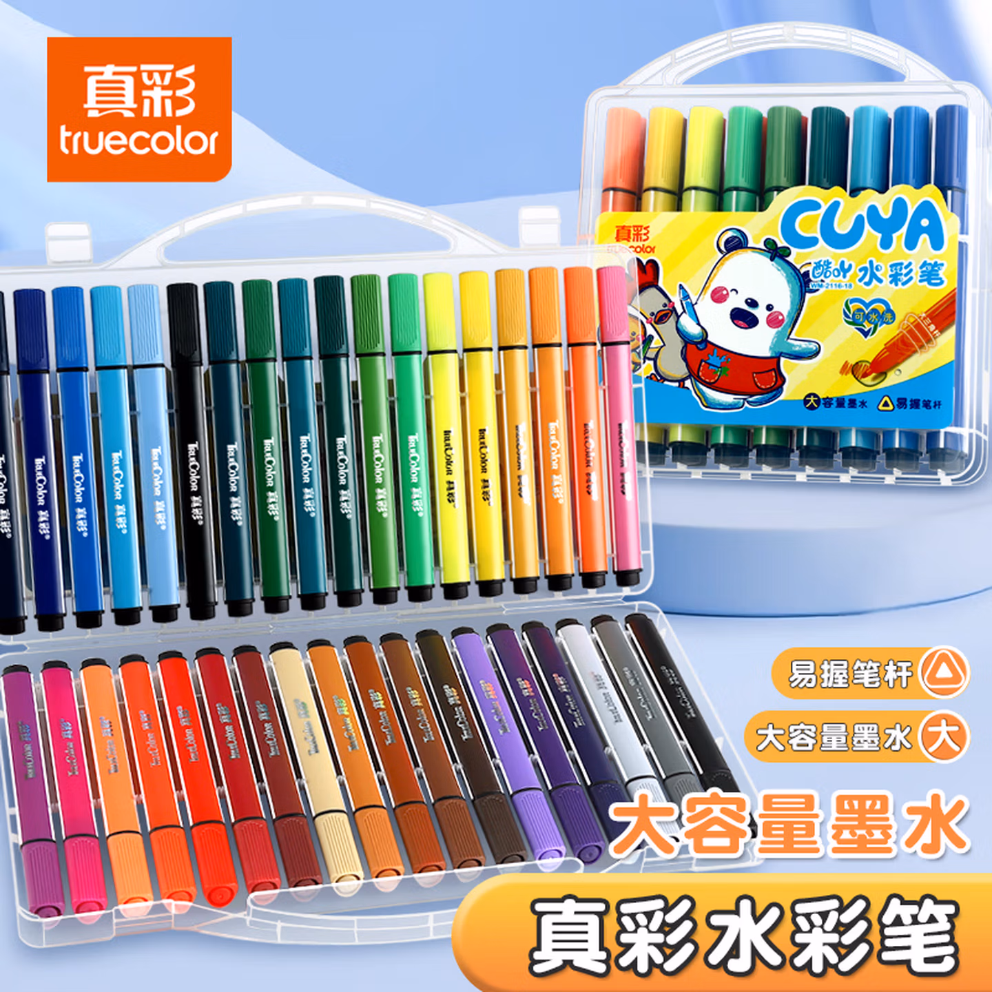 > 真彩(TRUECOLOR)18色大容量水彩笔儿童可水洗画笔幼儿园小学生美术专用绘画画笔套装礼盒彩色涂色笔2116水彩笔