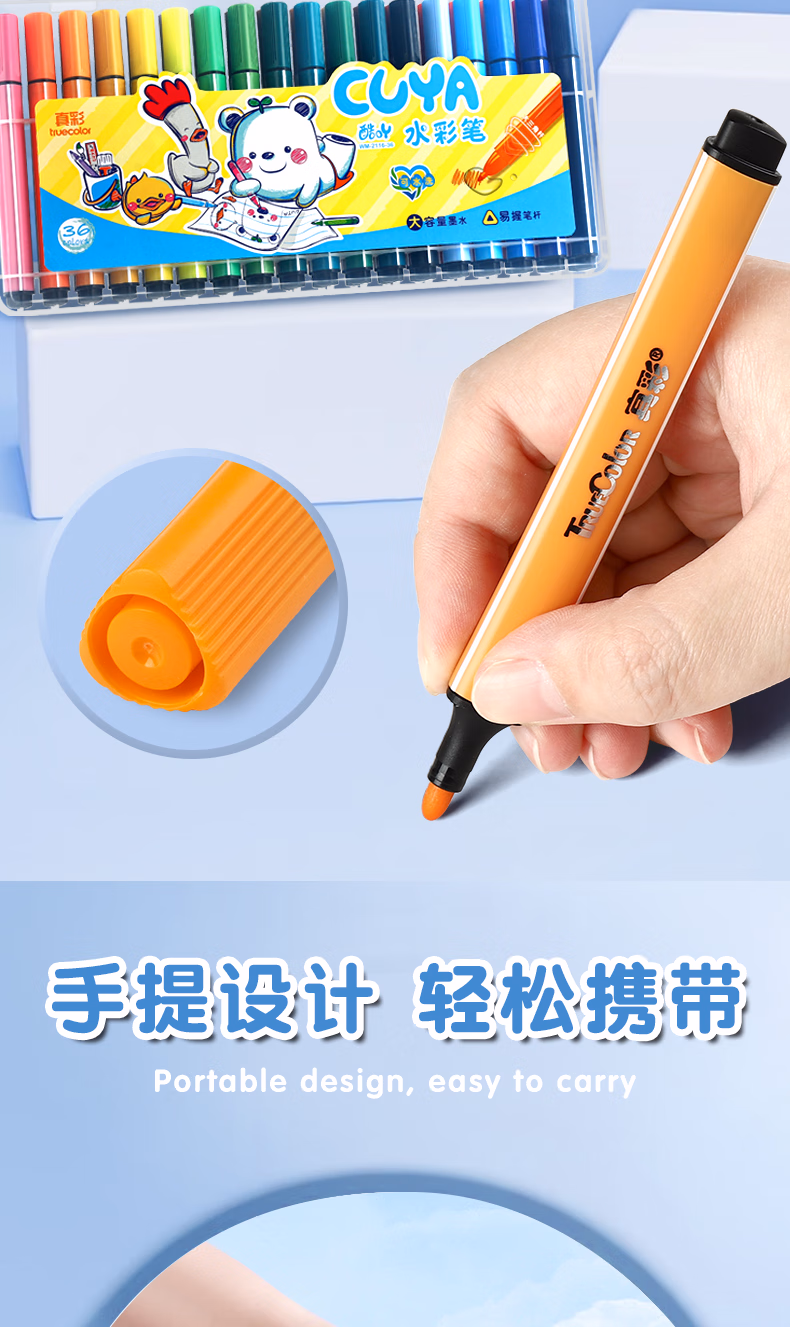 真彩(TRUECOLOR)18色大容量水彩笔儿童可水洗画笔幼儿园小学生美术专用绘画画笔套装礼盒彩色涂色笔2116水彩笔