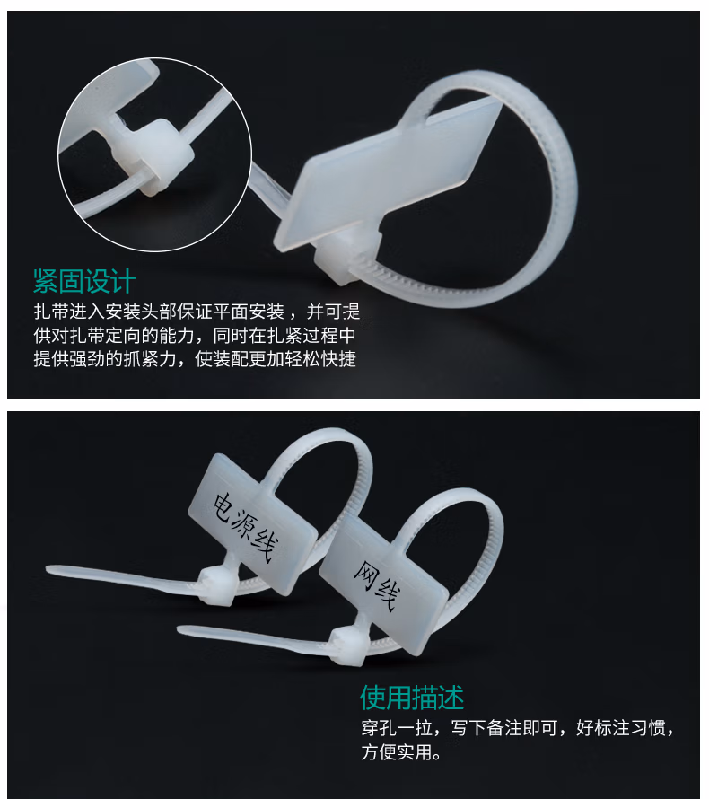 伊莱科(ELECALL)标牌扎线带3*100mm尼龙标签扎带吊牌扎带100根装内标白色收束扎带 A级外标 3*100(100根)