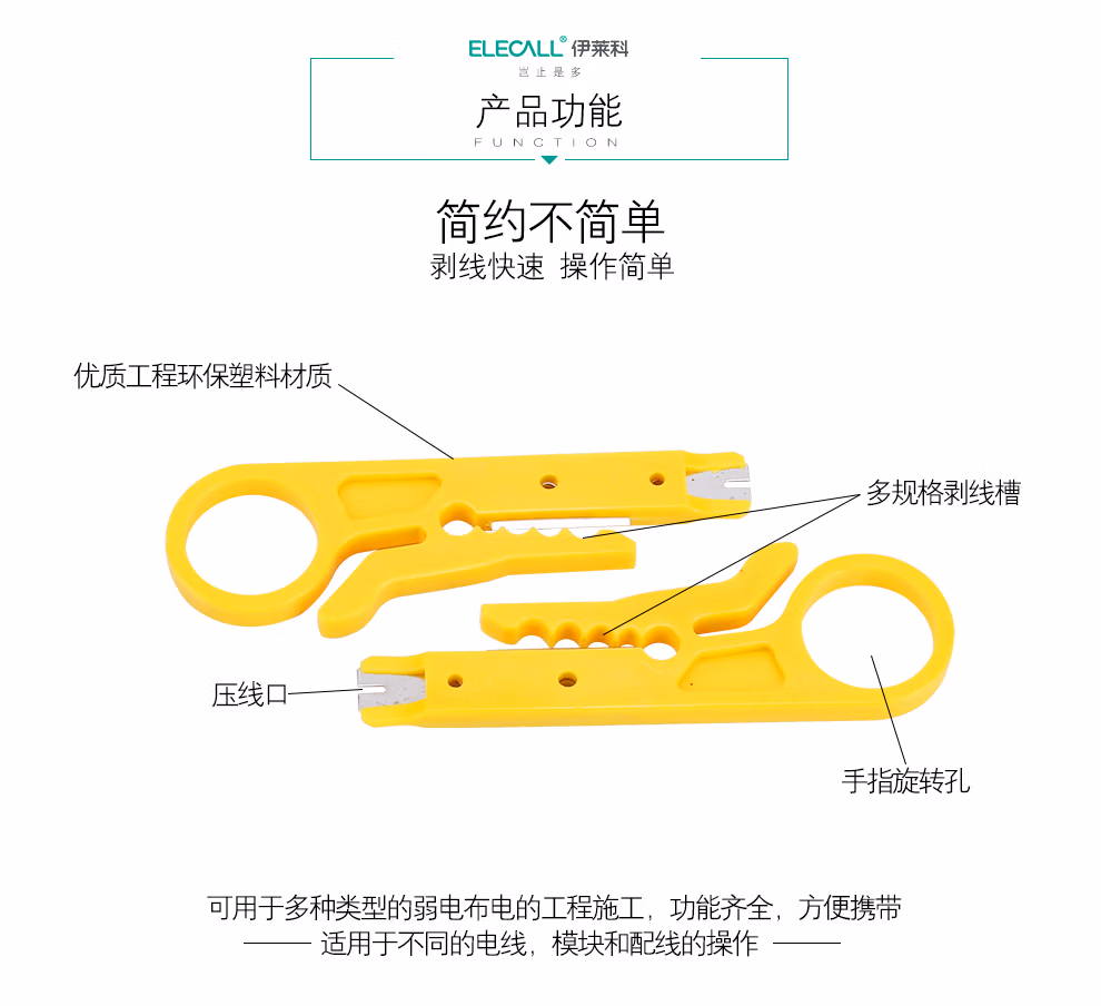 > 伊莱科(ELECALL) 黄色小剥线刀打线工具剥线器网线卡线刀电话线打线刀迷你小黄刀 10支装小黄刀