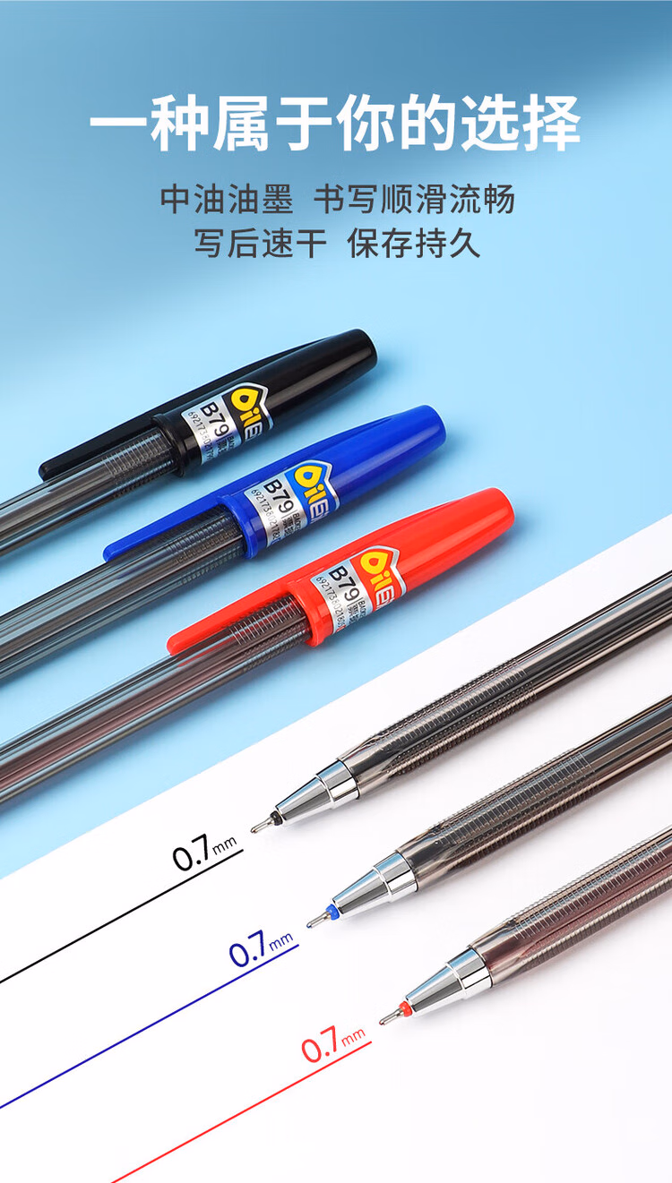 宝克(BAOKE)B79 圆珠笔中油笔0.7mm半针管头学生办公用原子笔票据笔 黑色 12支/盒
