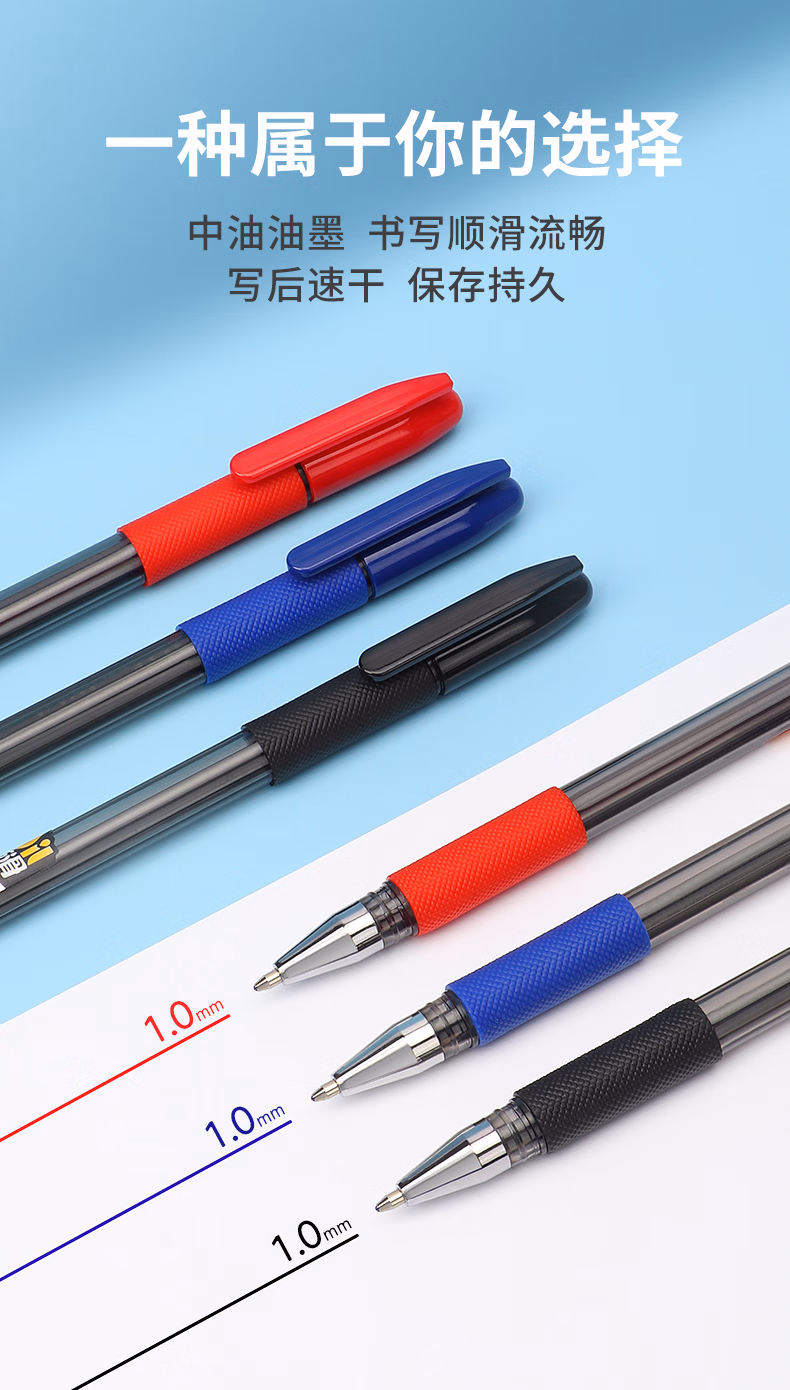 宝克(BAOKE)B82 圆珠笔中油笔1.0mm子弹头学生办公用原子笔票据笔 红色 12支/盒