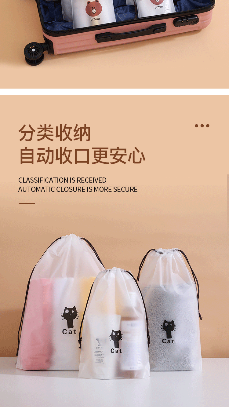 > 乐活旅行旅行收纳袋装衣鞋子衣物袜子内衣行李小束口透明密封袋抽绳大挂袋