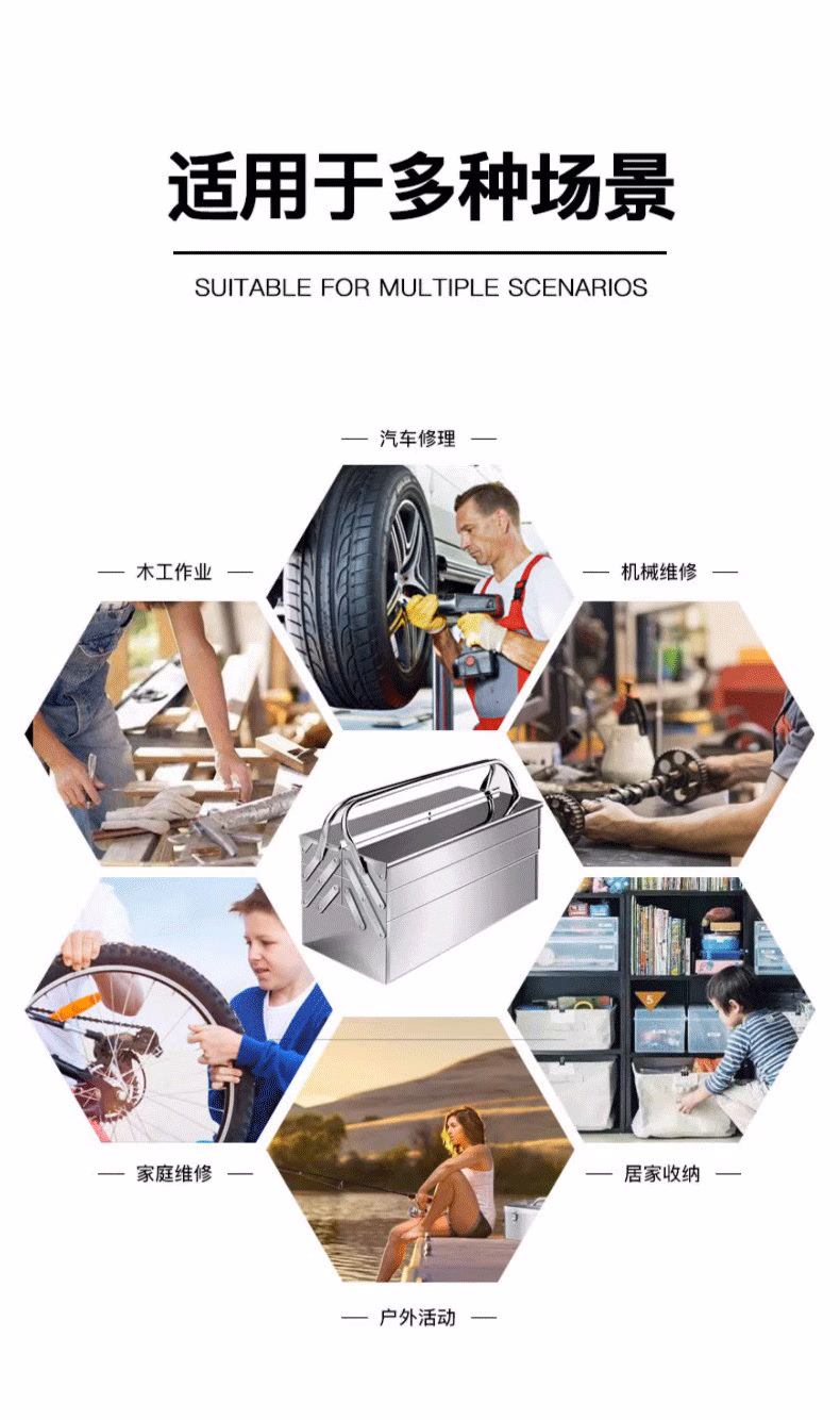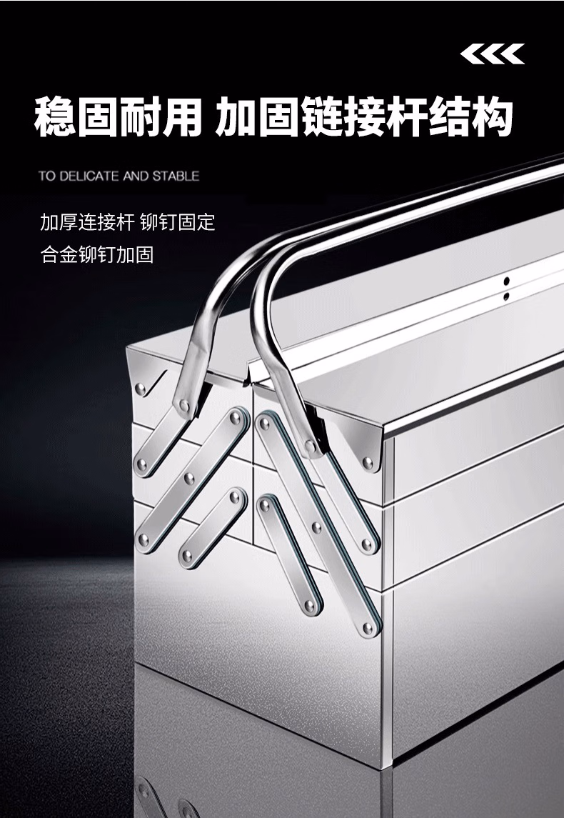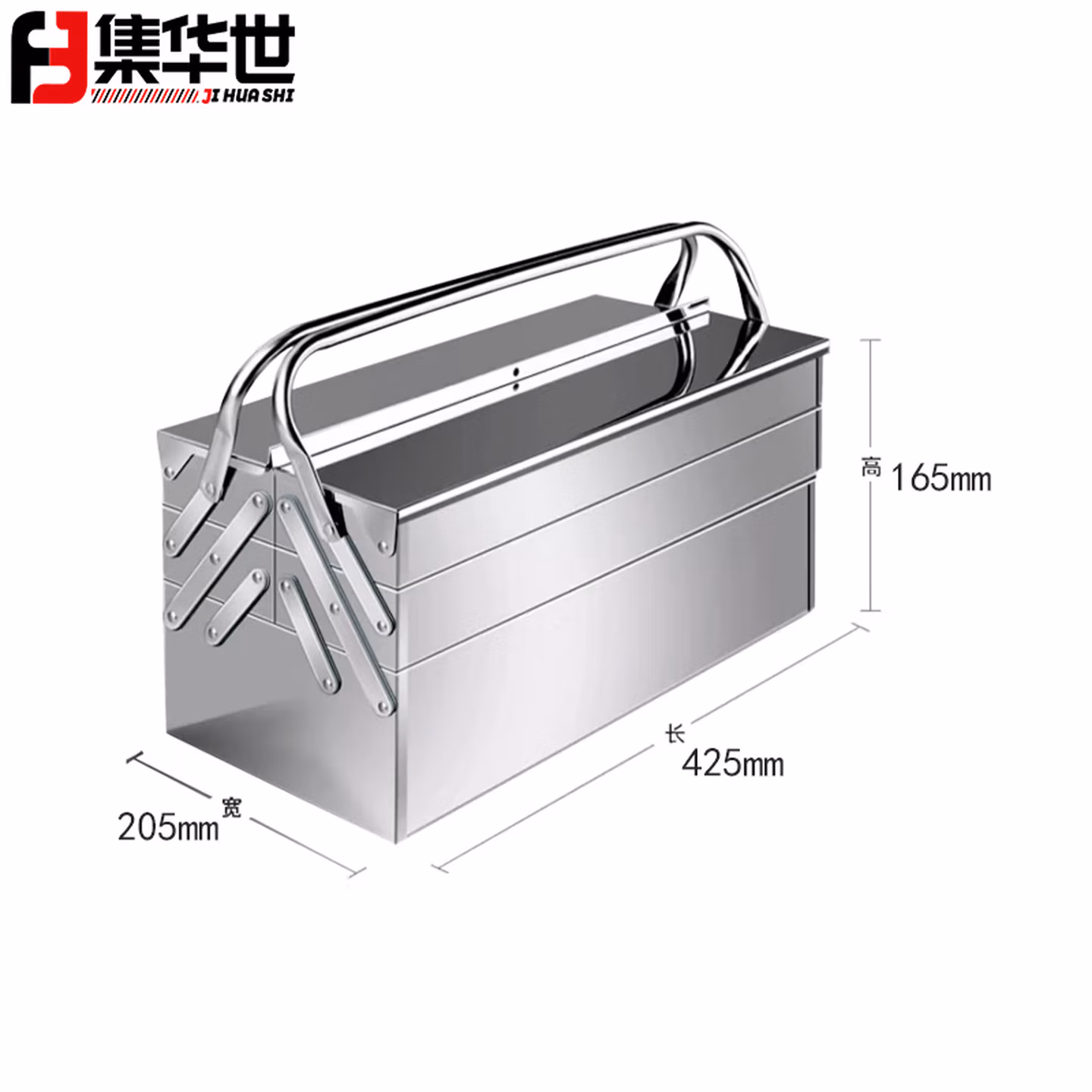 集华世 不锈钢多功能折叠工具箱手提式收纳盒【三层超大箱465*205*225mm】JHS-1519