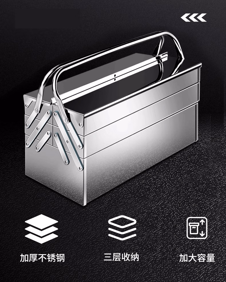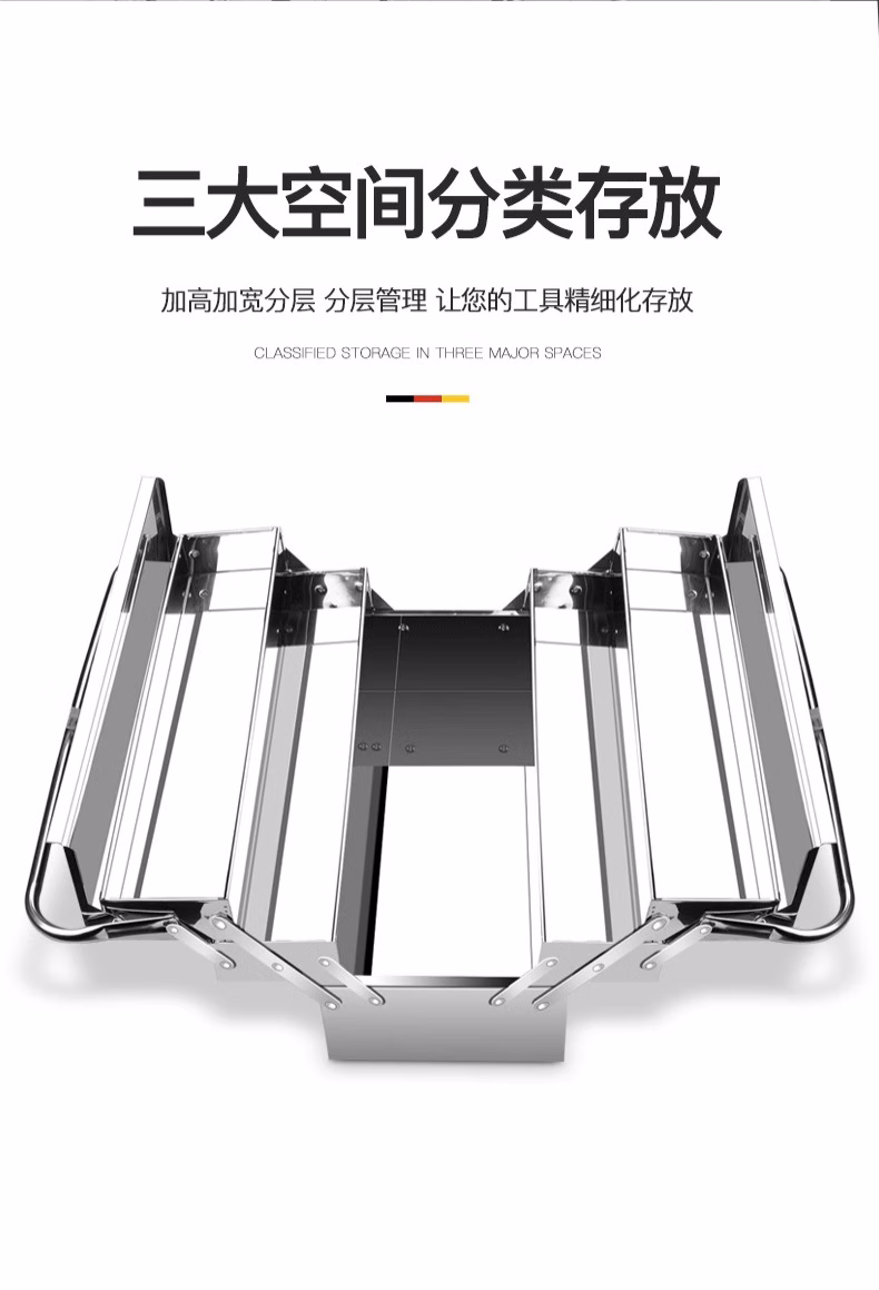 > 集华世 不锈钢多功能折叠工具箱手提式收纳盒【三层超大箱465*205*225mm】JHS-1519