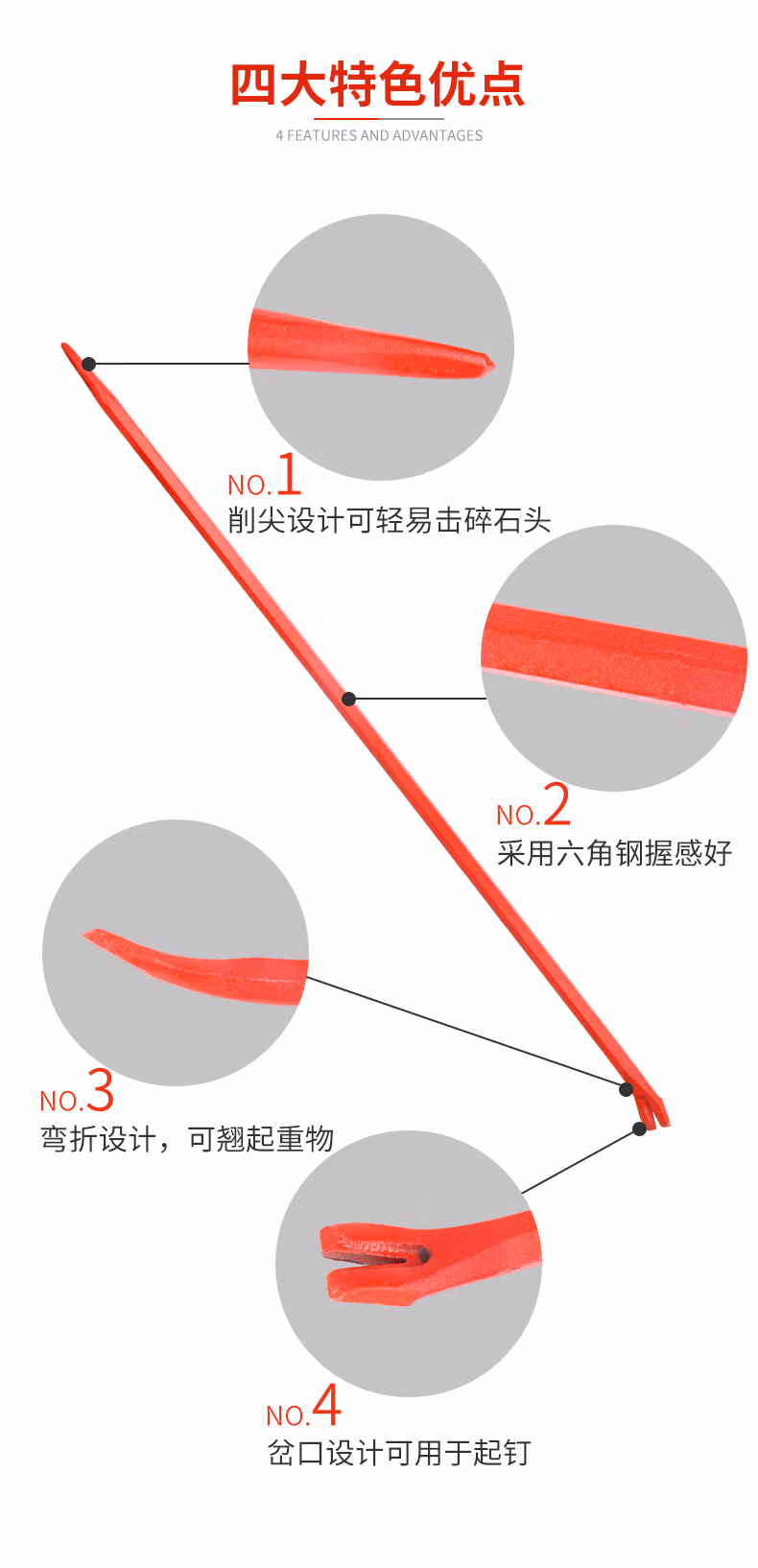 蓝炎 消防铁挺 起钉器工程撬杠撬棍 救援消防铁钎撬棒 消防器材1200mm