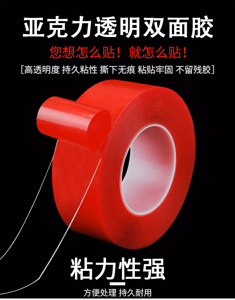 > 海斯迪克 亚克力双面胶无痕纳米透明胶带 红色 HKW-108 宽50mm*长3米