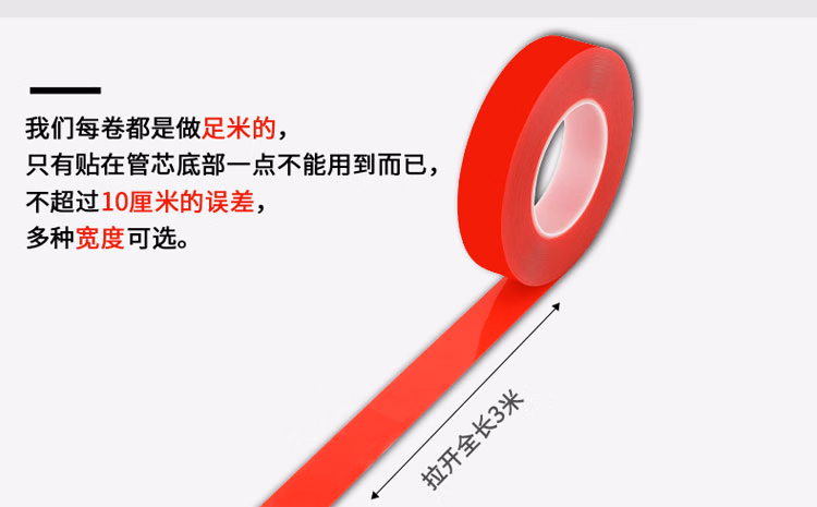 海斯迪克 亚克力双面胶无痕纳米透明胶带 红色 HKW-108 宽50mm*长3米