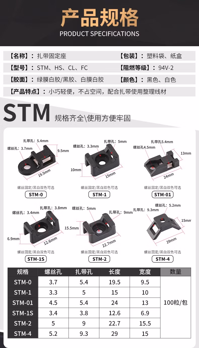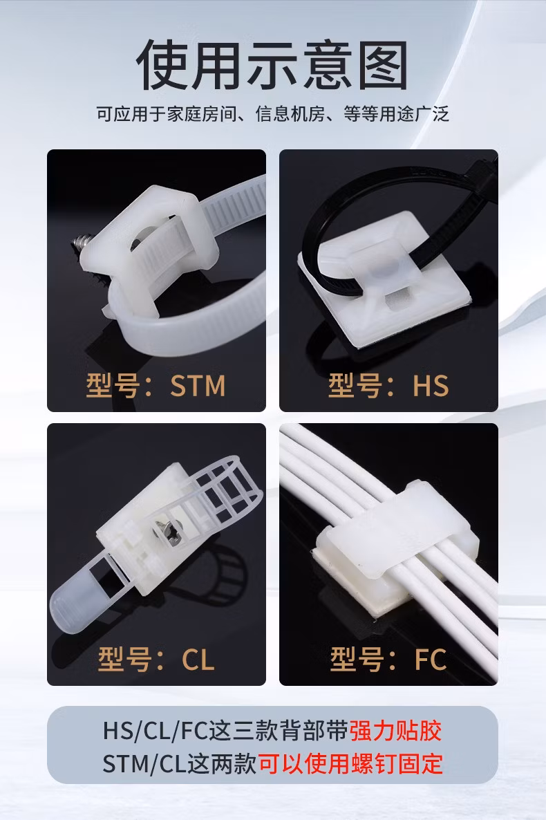 > 佰瑞特 自粘式卡扣 3m扎带固定座 免钉整理线夹 束线带固夹 电线机箱插排电脑线夹 带胶扎带免打孔 CL-1【10个】白色可调固定座