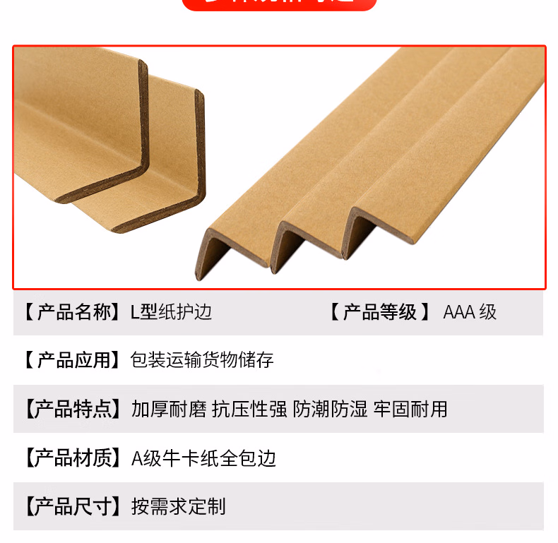 > 贝傅特 L型纸护角 纸护角条打包护角L型保护条护墙角纸板脚撑 50*50*5*1000mm一百条