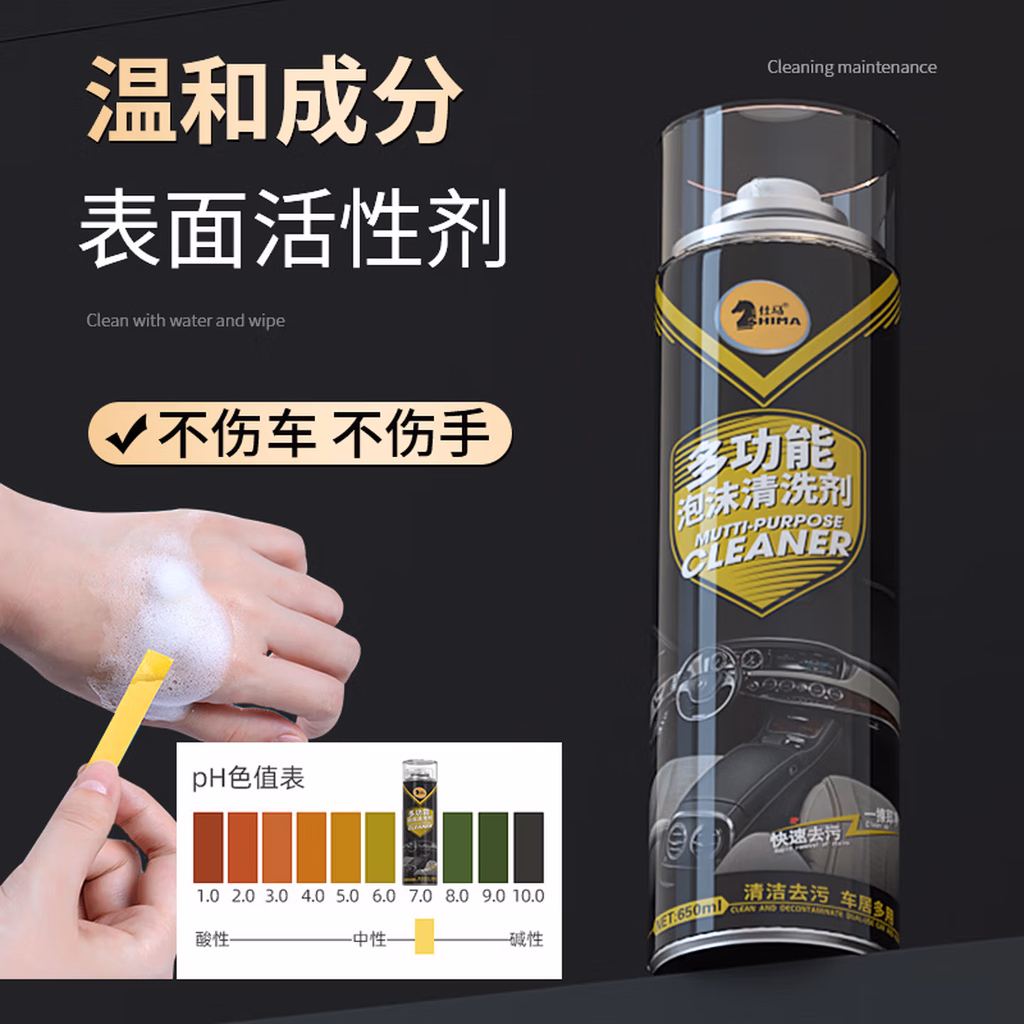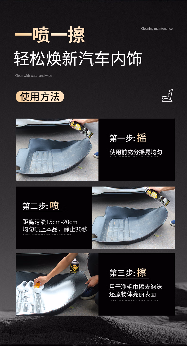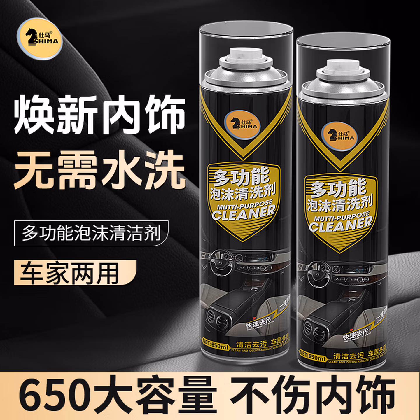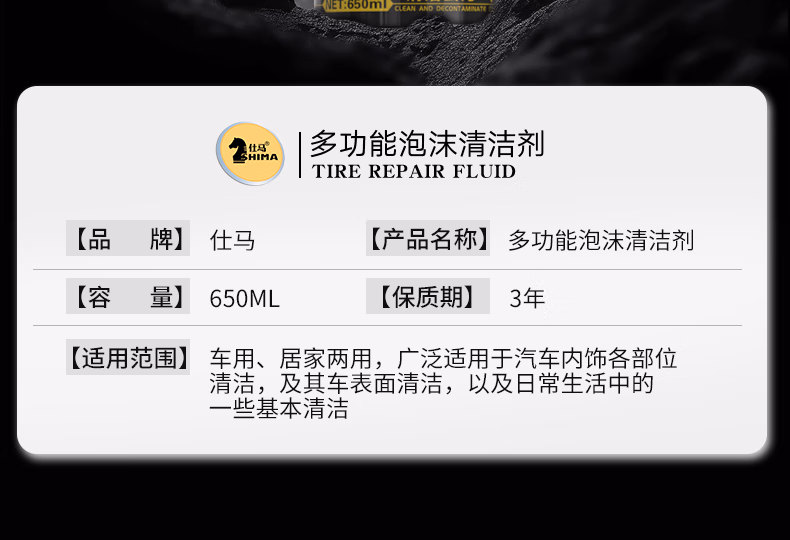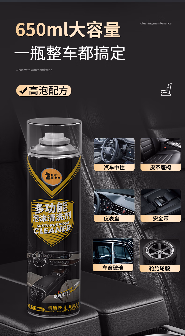 > 仕马汽车内饰清洗剂多功能免洗泡沫清洁顶棚座椅皮革去污洗车神器 多功能内饰清洗剂 650ml 1瓶 送毛巾