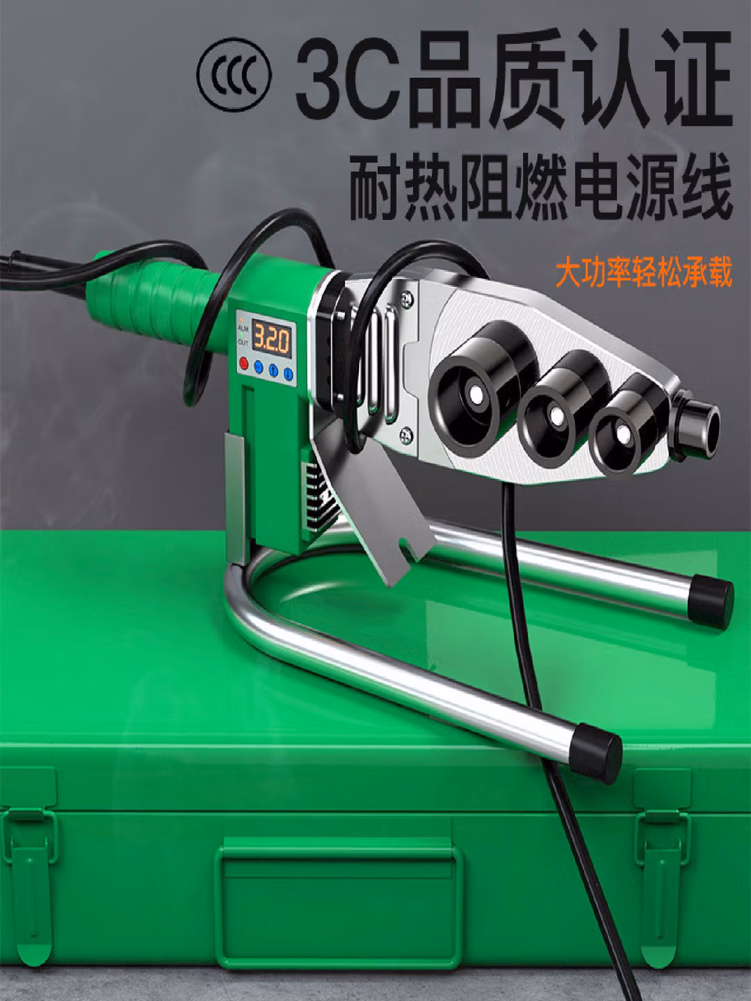 > 接运猫PPR热熔器热熔机焊管机管子熔接机电子恒温数显热熔器水管热熔机 501点5寸杜邦灰特厚模头送工具