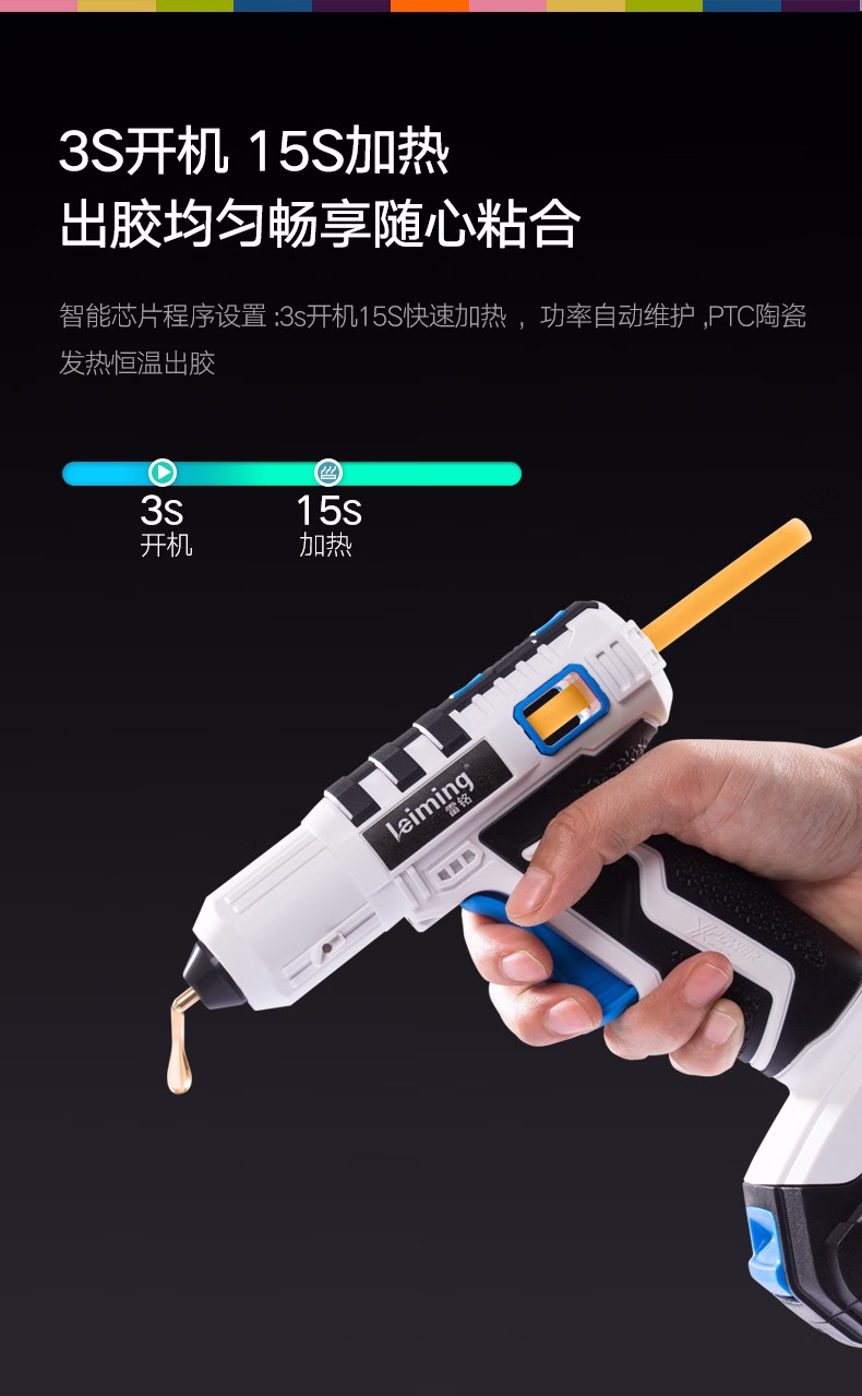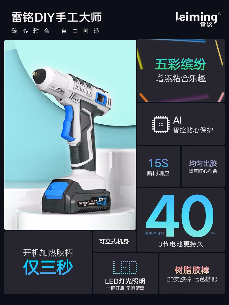 > 雷铭12V充电式热胶枪无线锂电胶枪家用手工DIY儿童手工热胶枪胶棒 12V胶枪+20根胶棒