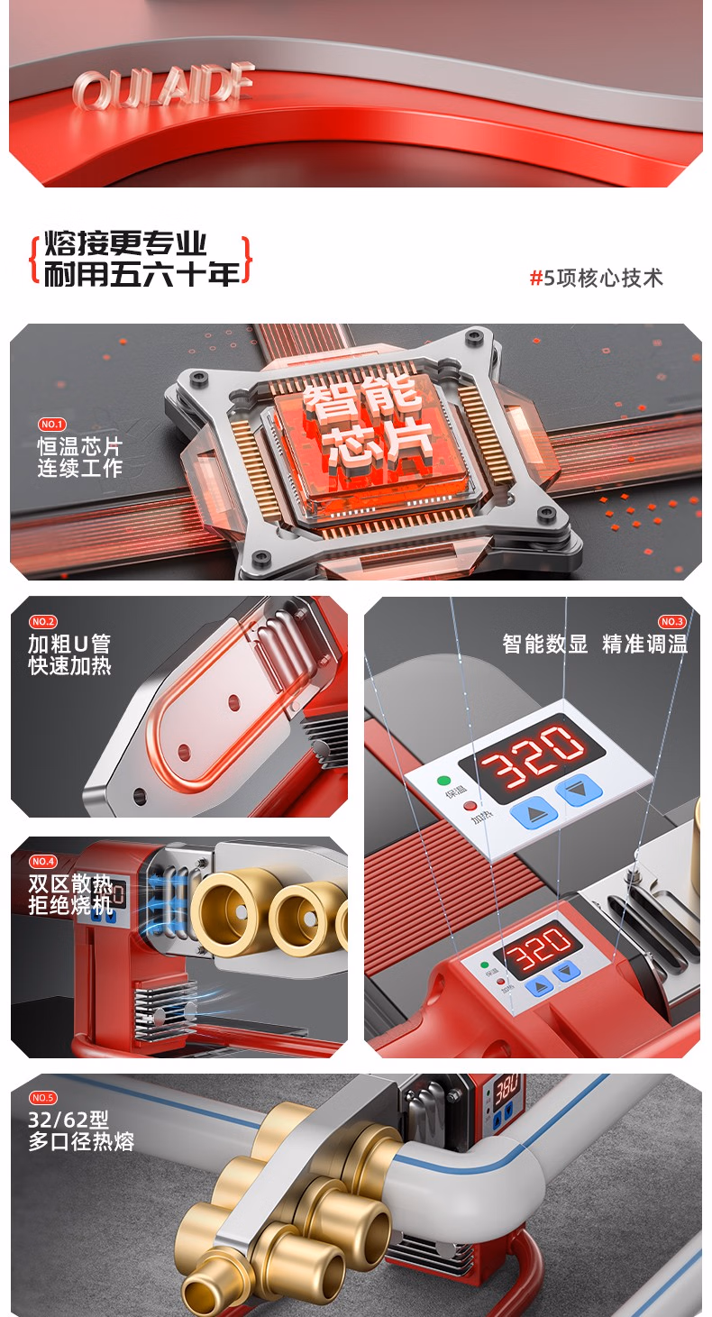 欧莱德(OULAIDE)电子恒温热熔器数显可调温PPR水管热熔机塑焊机热合机热熔器 旗舰 63数显热熔器+6对大金摸头+剪刀