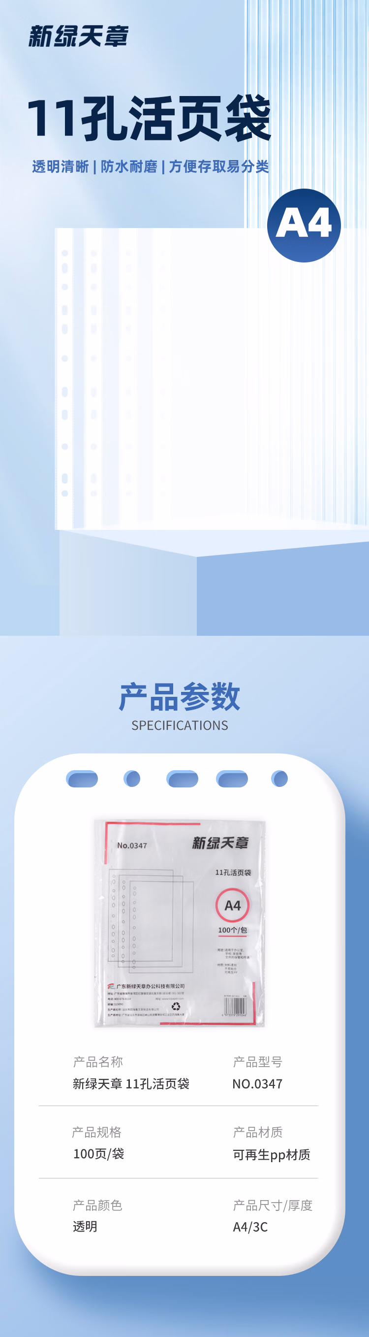 天章 (TANGO)11孔文件袋100只装A4十一孔文件袋透明资料袋文件保护袋替芯快递票据防水收纳袋插页夹办公用品