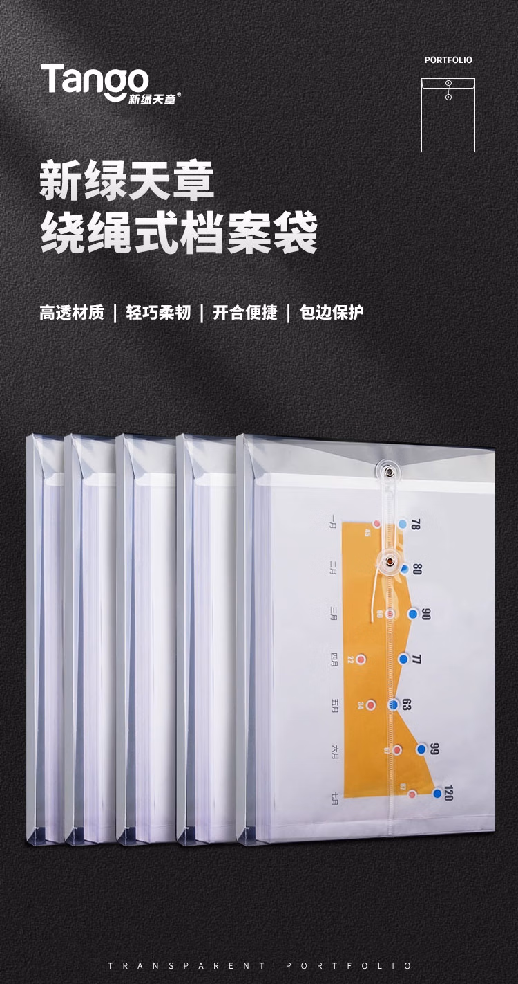 天章 (TANGO)a4透明文件袋10只档案资料收纳袋pp绕绳文件袋16C加厚财务收纳用品学习资料档案存放