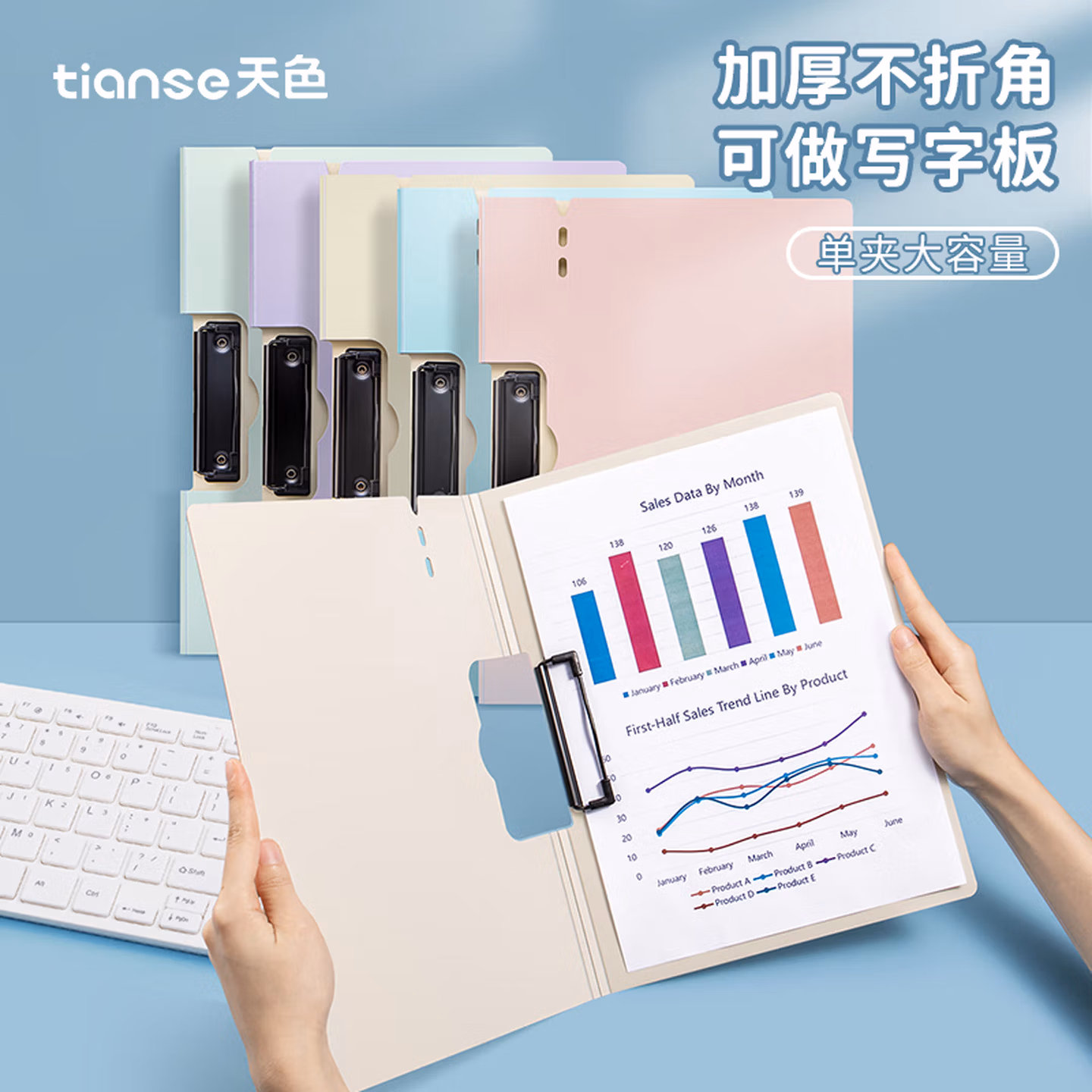 > 天色 5个A4文件夹夹板 板夹会议夹秘书夹资料夹试卷夹签字签约呈阅夹横式折页 办公用品 TS-10006 混色
