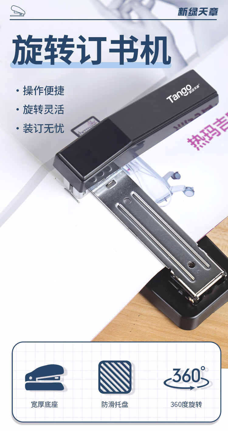 > 天章办公(TANGO)12#旋转式订书机/订书器/中缝装订/临时装订可拆/黑色/探戈系列办公文具