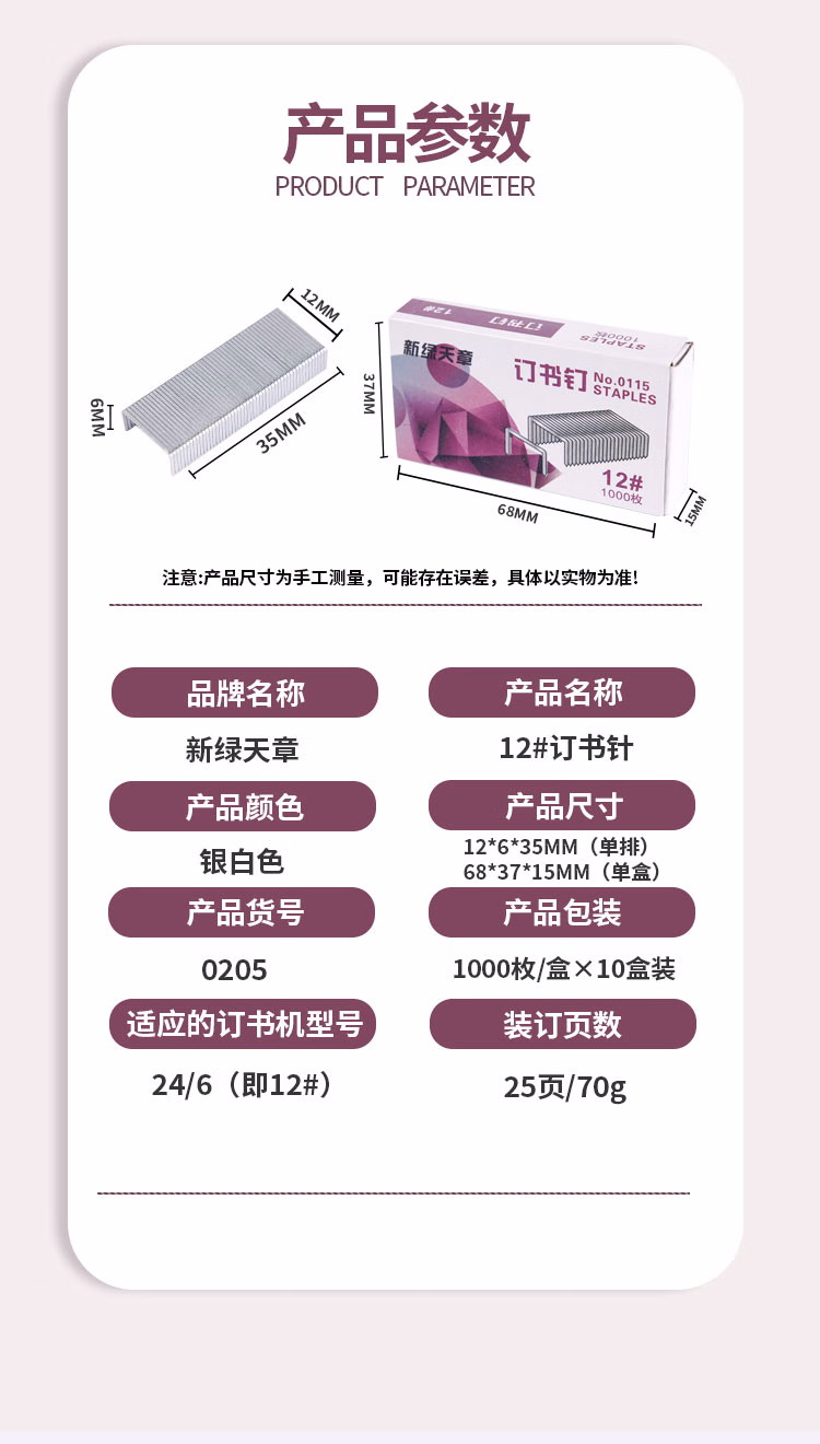 > 天章办公(TANGO)高强度加厚订书针12#(24/6)1000枚/盒/10盒装