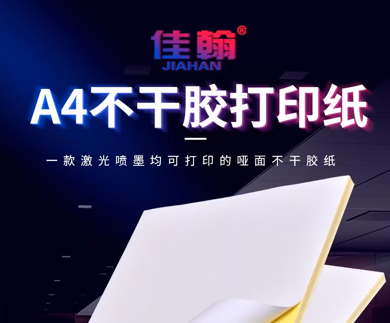 > 佳翰A4不干胶打印纸100张不干胶a4纸标签贴纸粘贴光面激光打印不粘胶空白背胶纸喷墨不干胶标签纸50张 白色【亮面】需激光打印 内切 30格 圆角 50张 白底