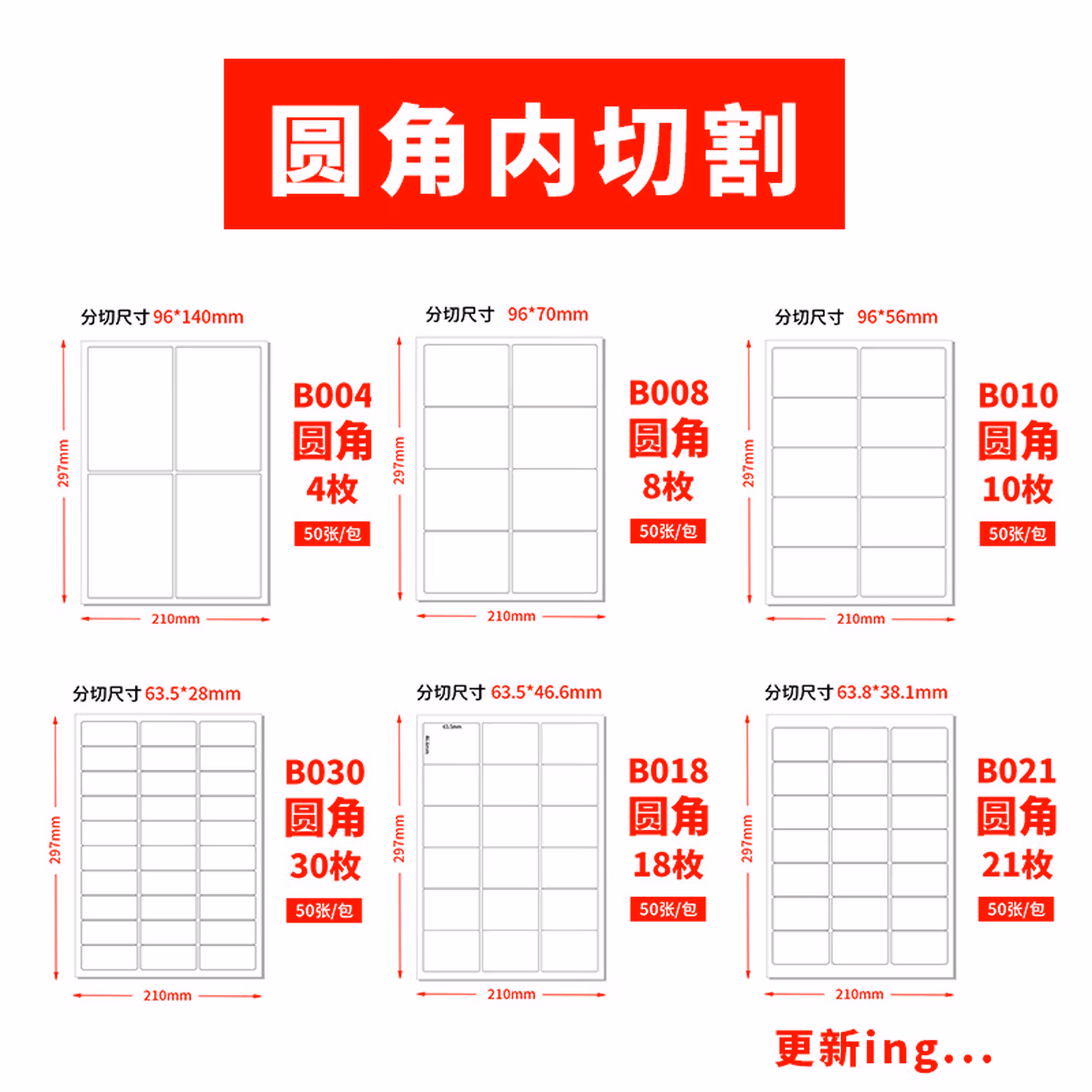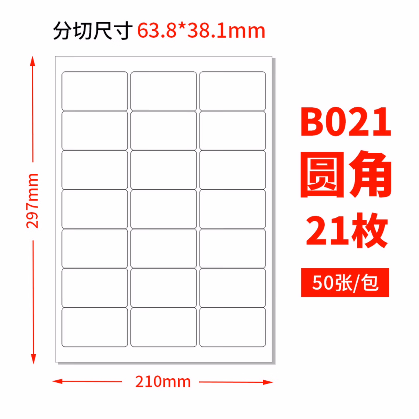 内切 21格 圆角 50张 白底