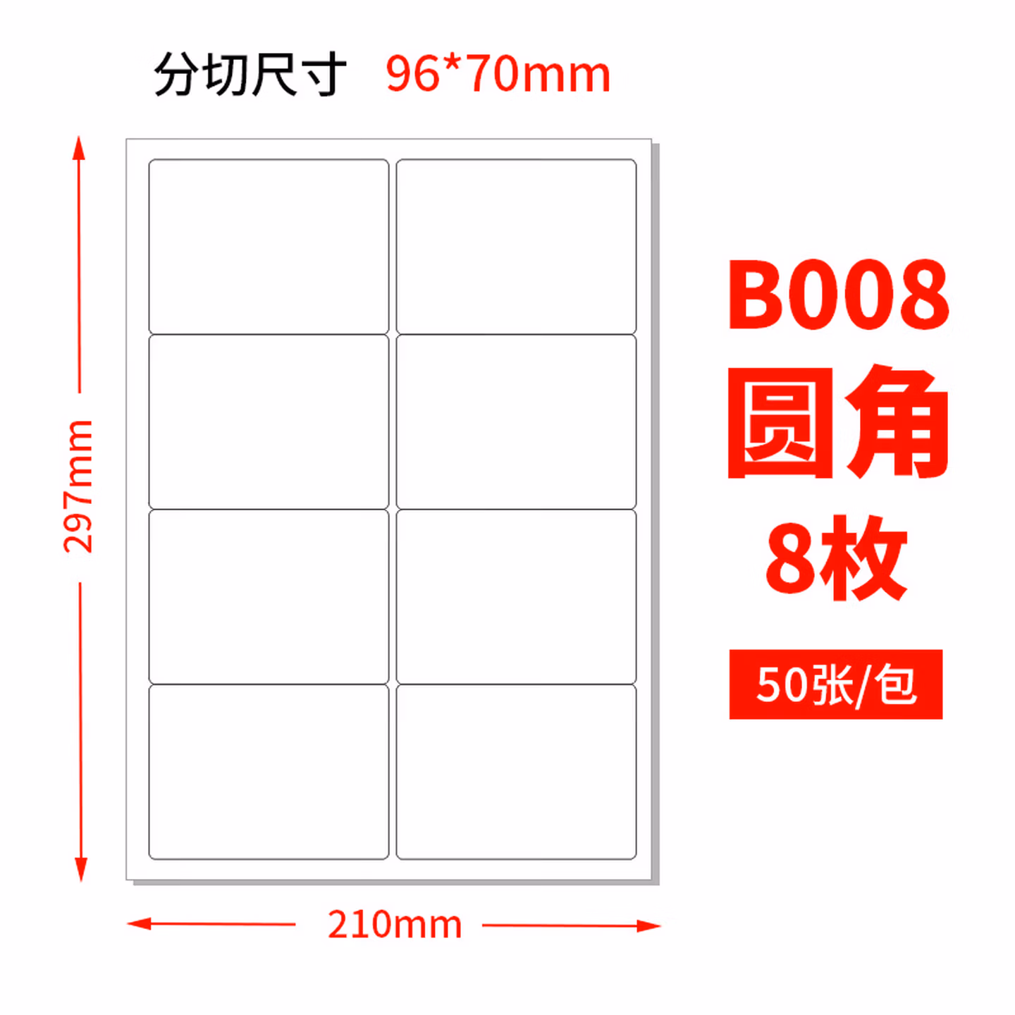 内切 8格 直角 50张 白底