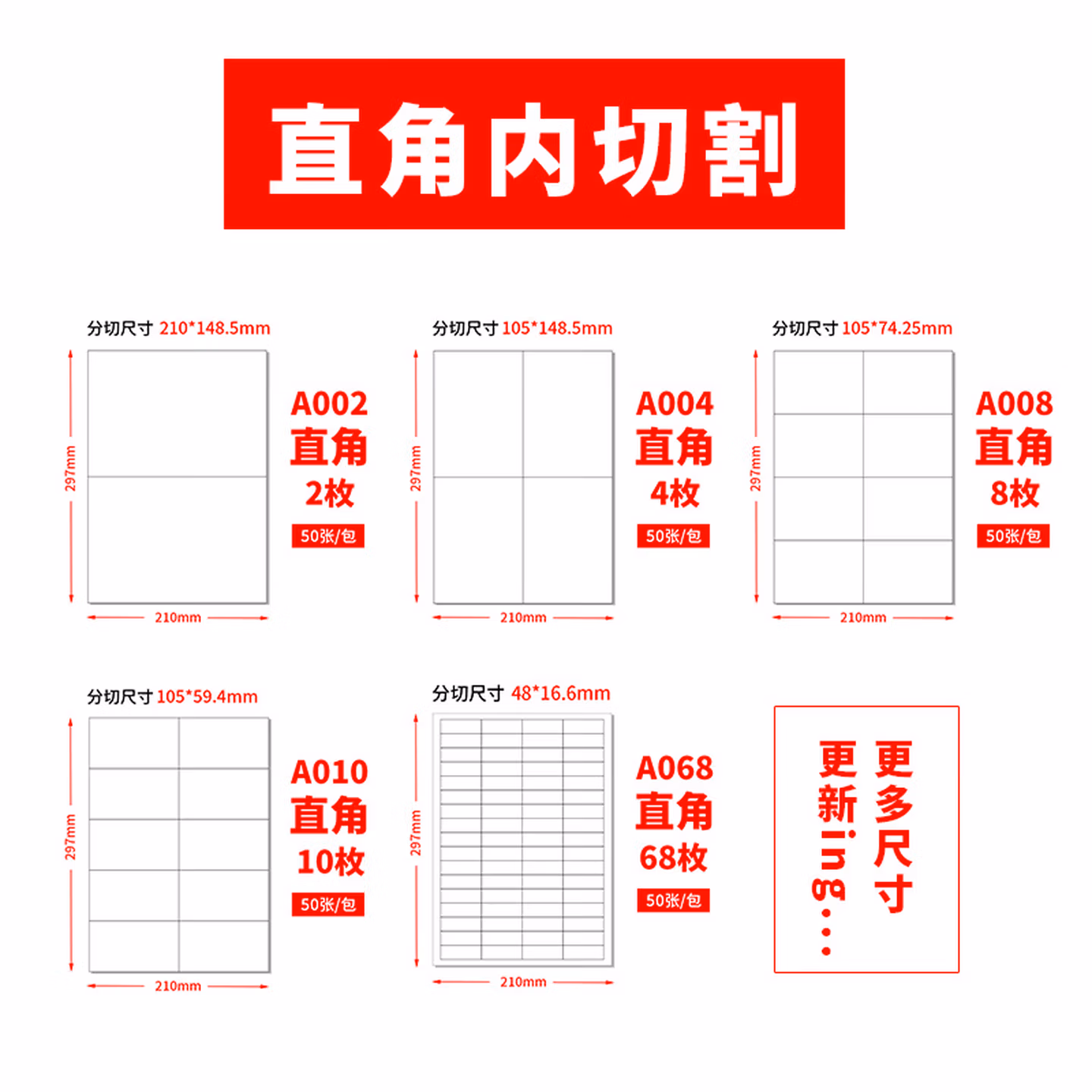 内切 68格 直角 50张 白底