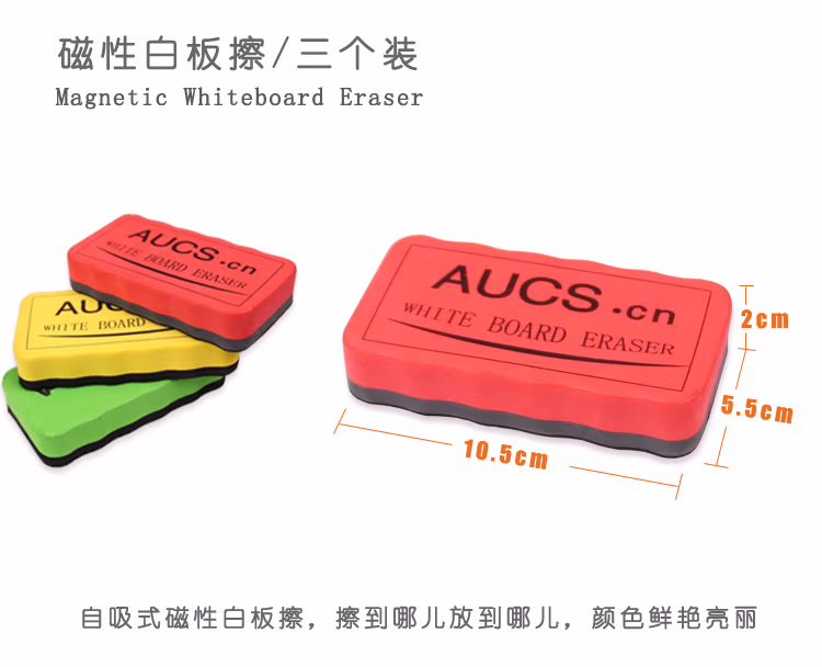 > AUCS 磁性白板擦磁吸黑板擦刷白板笔板擦画板写字板玻璃板擦专用套装白班擦 办公用品 3个装/三色