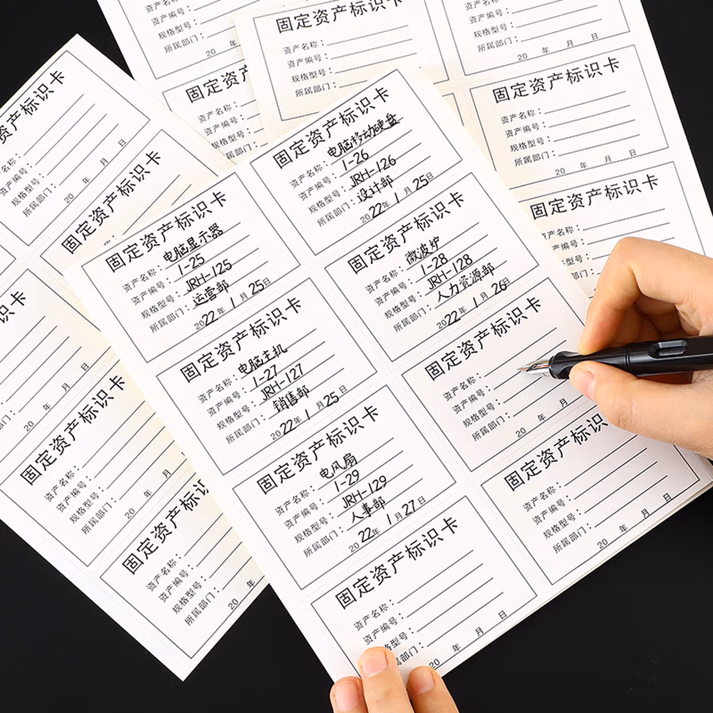 > 嘉然恒(jiaranheng)固定资产标签贴纸 固定资产标识卡 手写不干胶标签贴纸自粘型贴纸办公用品可定制 50张400贴