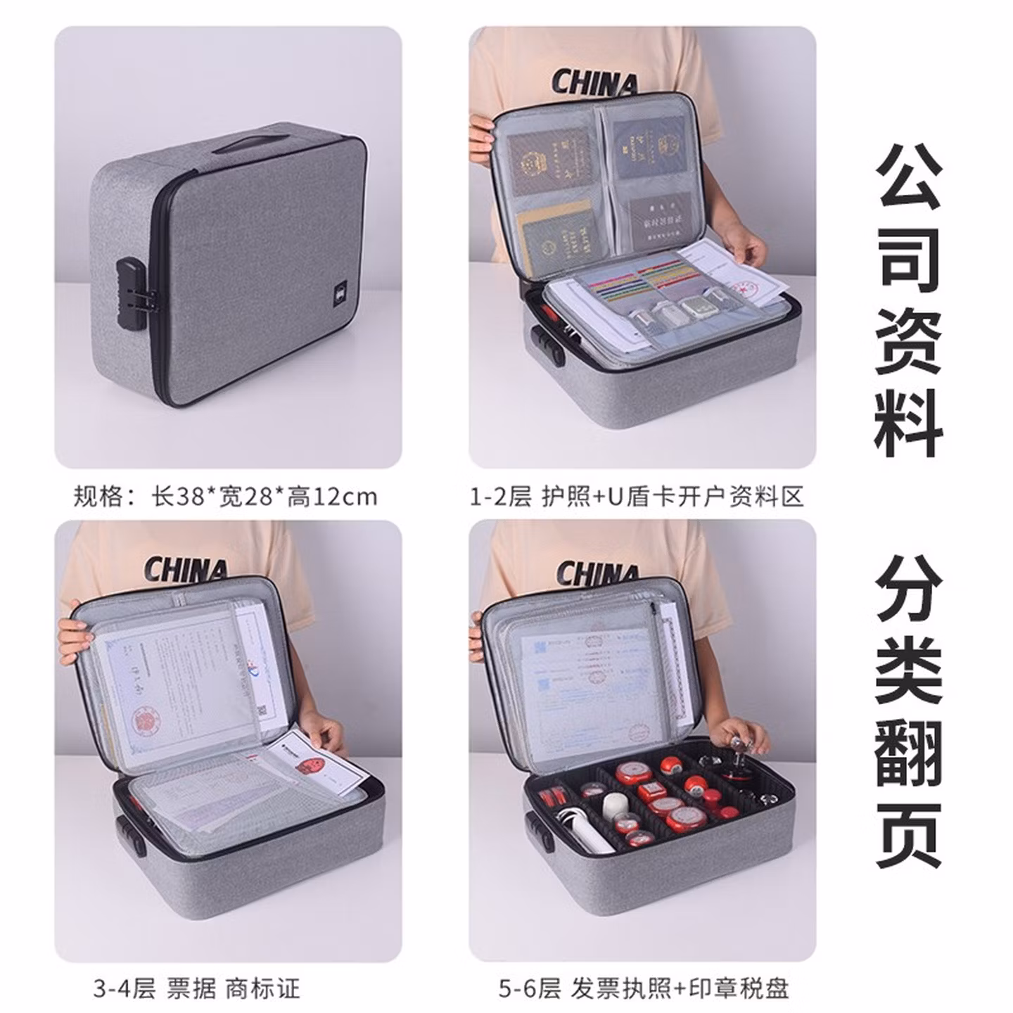 > 立信 印章收纳盒多格印章箱大容量带密码锁营业执照印章收纳包便携印章执照一体包高档公章盒收纳袋 蓝色(防水布)8个章位
