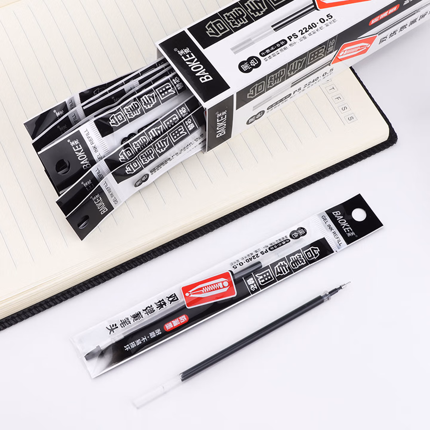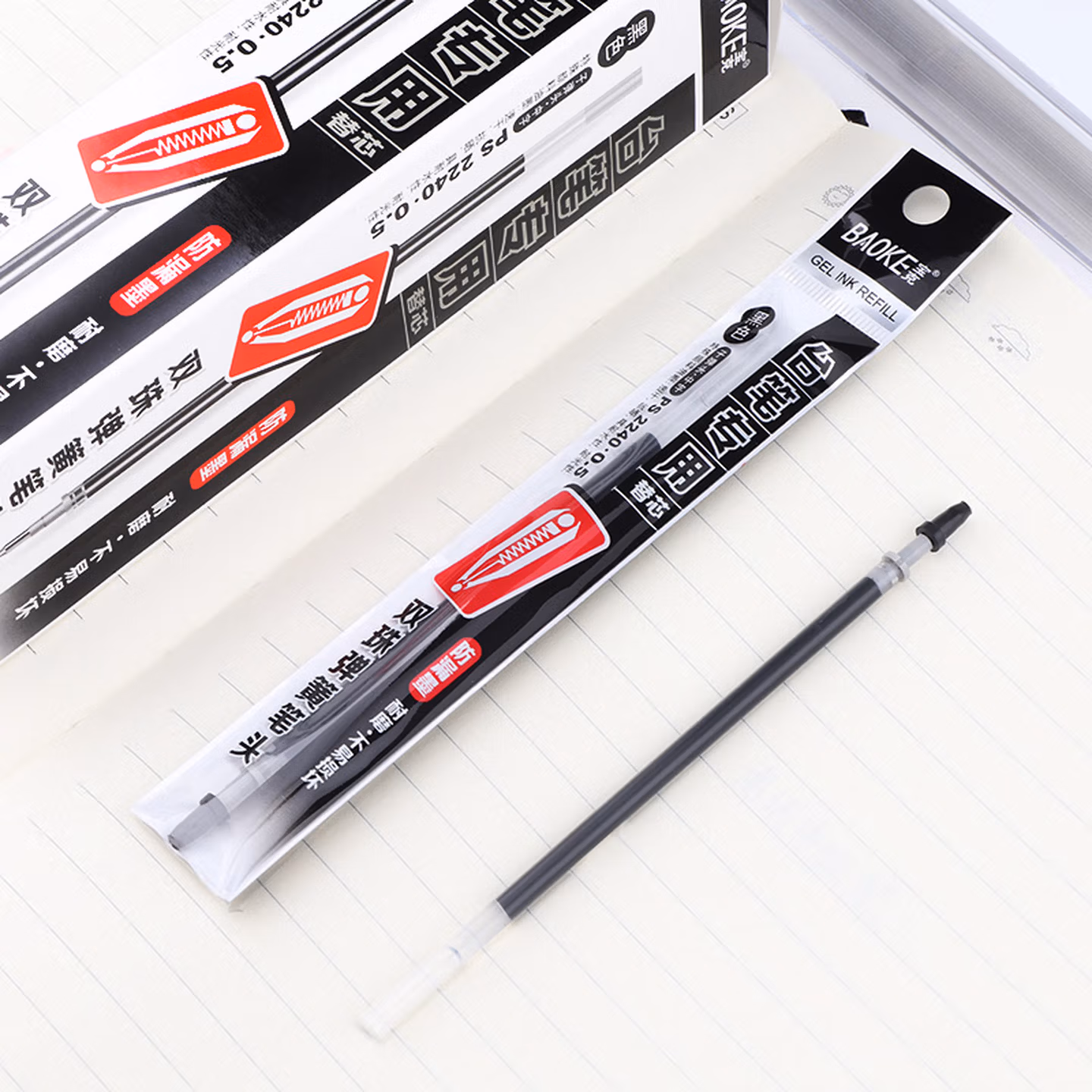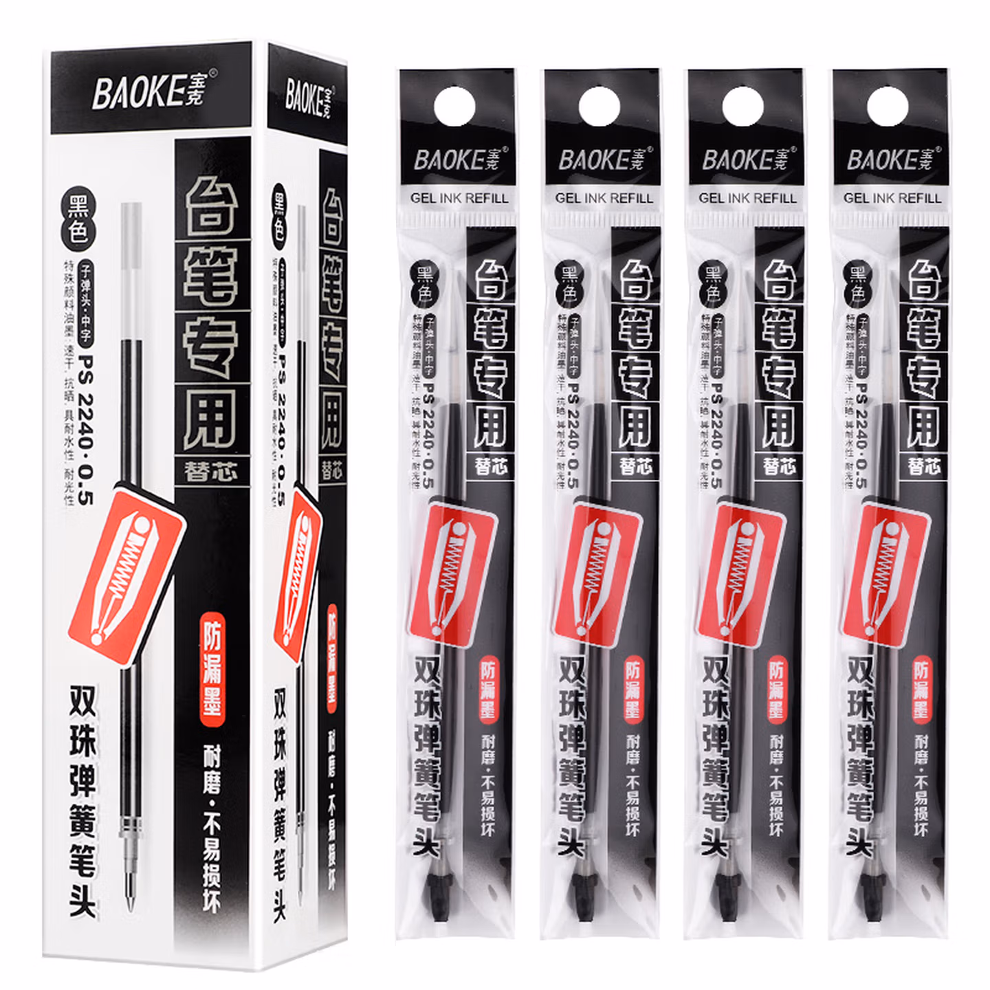 宝克(BAOKE) 笔芯 中性笔芯0.5mm台笔笔芯 黑色学生水笔替芯 柜台笔替芯 文具 20支/盒实惠装 PS2240