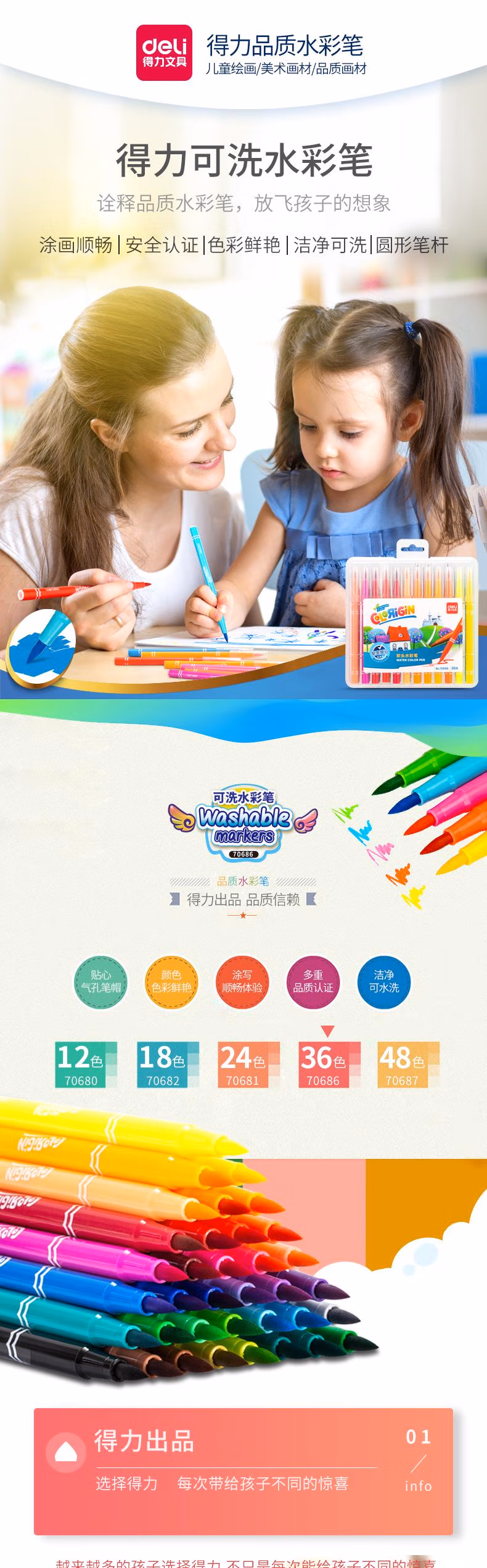 【软头水彩笔】36色-易涂