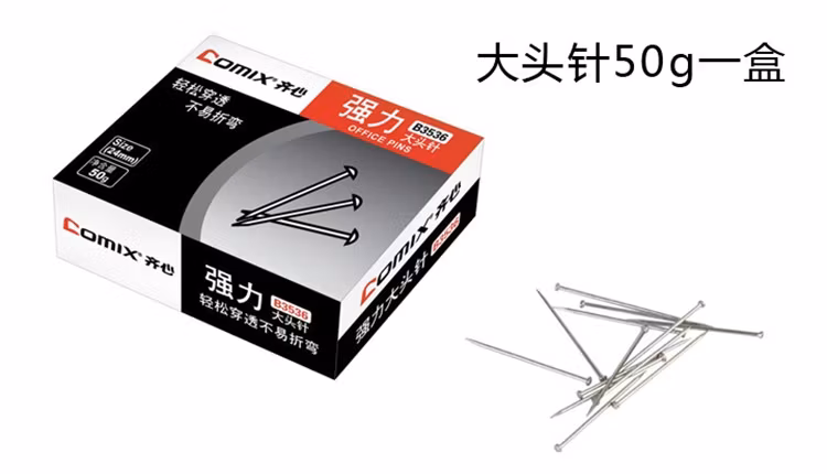 > 齐心(COMIX) 10盒装大头针固定针珍珠针定位针 24mm 50枚/盒 办公文具B3536