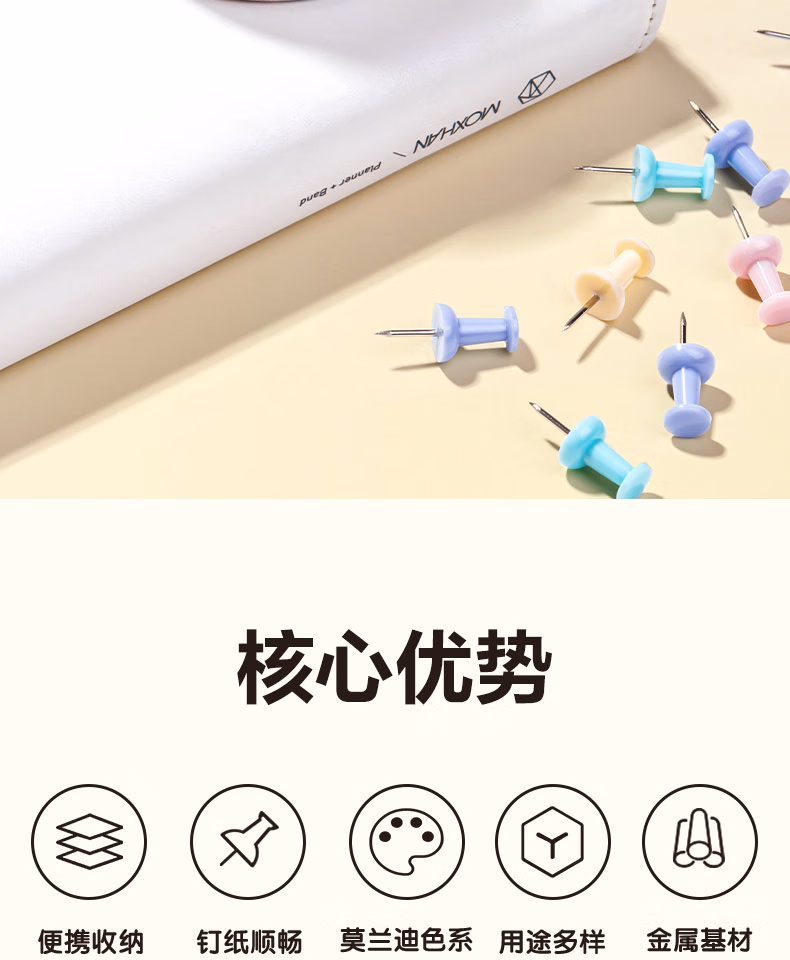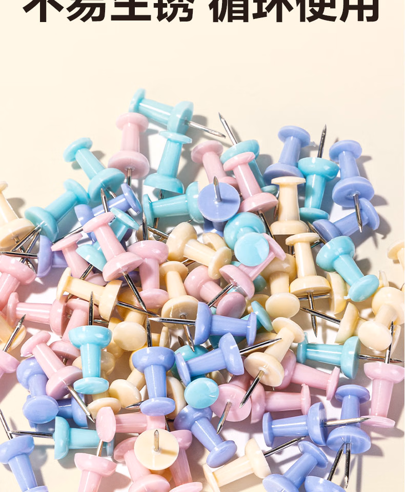 > 得力(deli)图钉金属按钉镀镍手按小号圆头钉办公用品大头针工字钉软木板照片墙装饰平头固定墙壁丁子 工字钉-80枚/盒-经典配色 0042