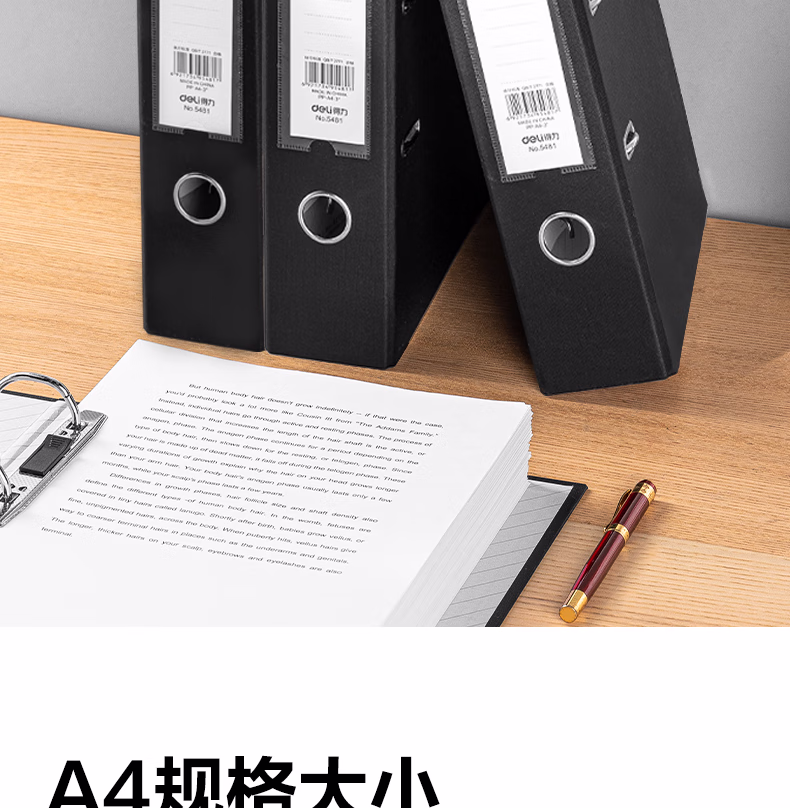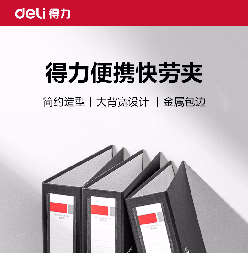 > 得力(deli) A4/3英寸带孔文件夹快劳夹办公文件资料收纳夹单只装 5481黑色