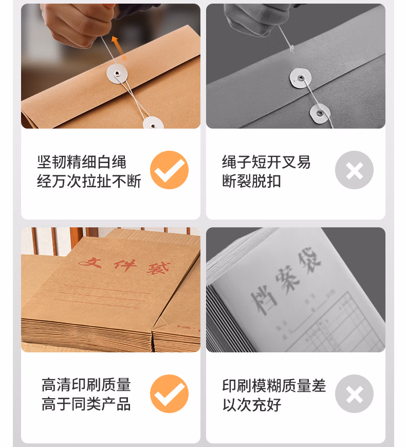 > 美衣羊袋牛皮纸600个整箱批发A4纸质1807-6国产纸4cm加厚加大号容量投标文件袋资料袋 25个【4cm装320张】标厚牛卡纸-18072