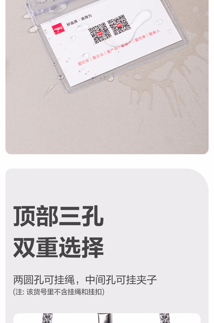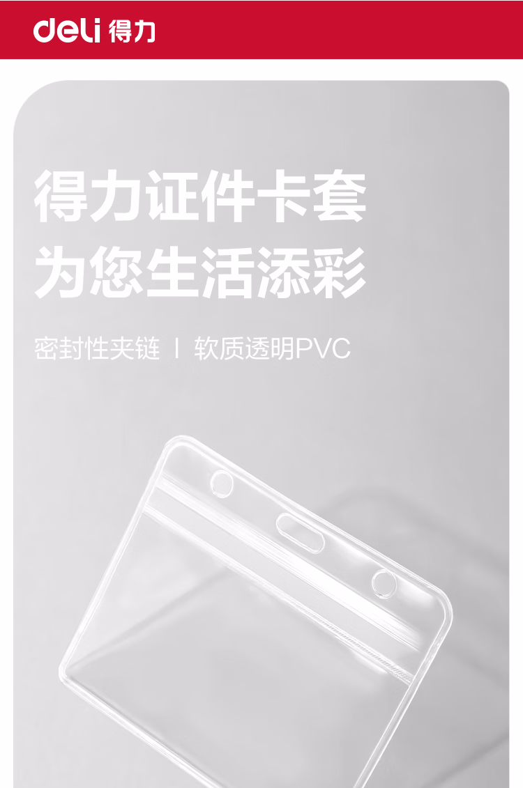 > 得力(deli)100个横式防水工作牌证件卡套 透明工作证员工牌公交卡套饭卡门禁地铁卡套学生胸牌 5758