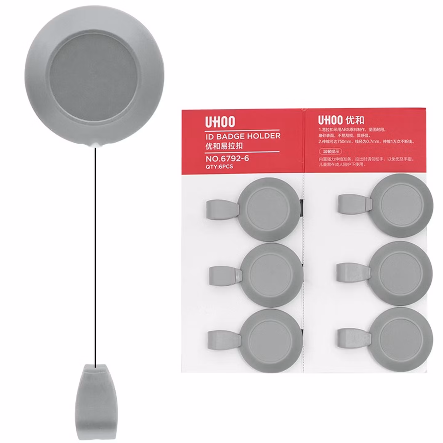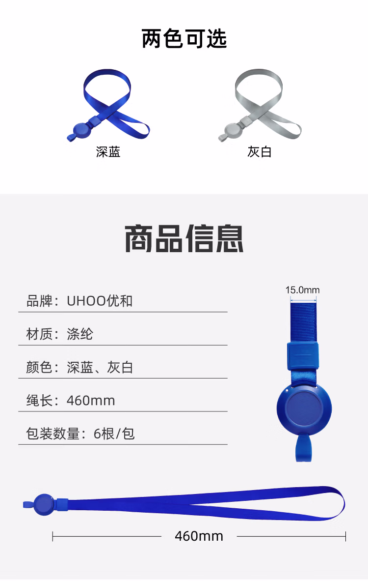 > 优和(UHOO) 6793-6 易拉扣挂绳 (宽1.5cm ) 灰白 6根/包 证件卡套工作证员工牌胸卡公交卡套学生饭卡吊绳