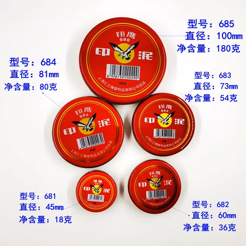 > 特大号朱砂印泥翔鹰老式泥巴状印泥朱砂印泥大号红色铁壳按手印小号印泥盒 684中大号径8.1厘米