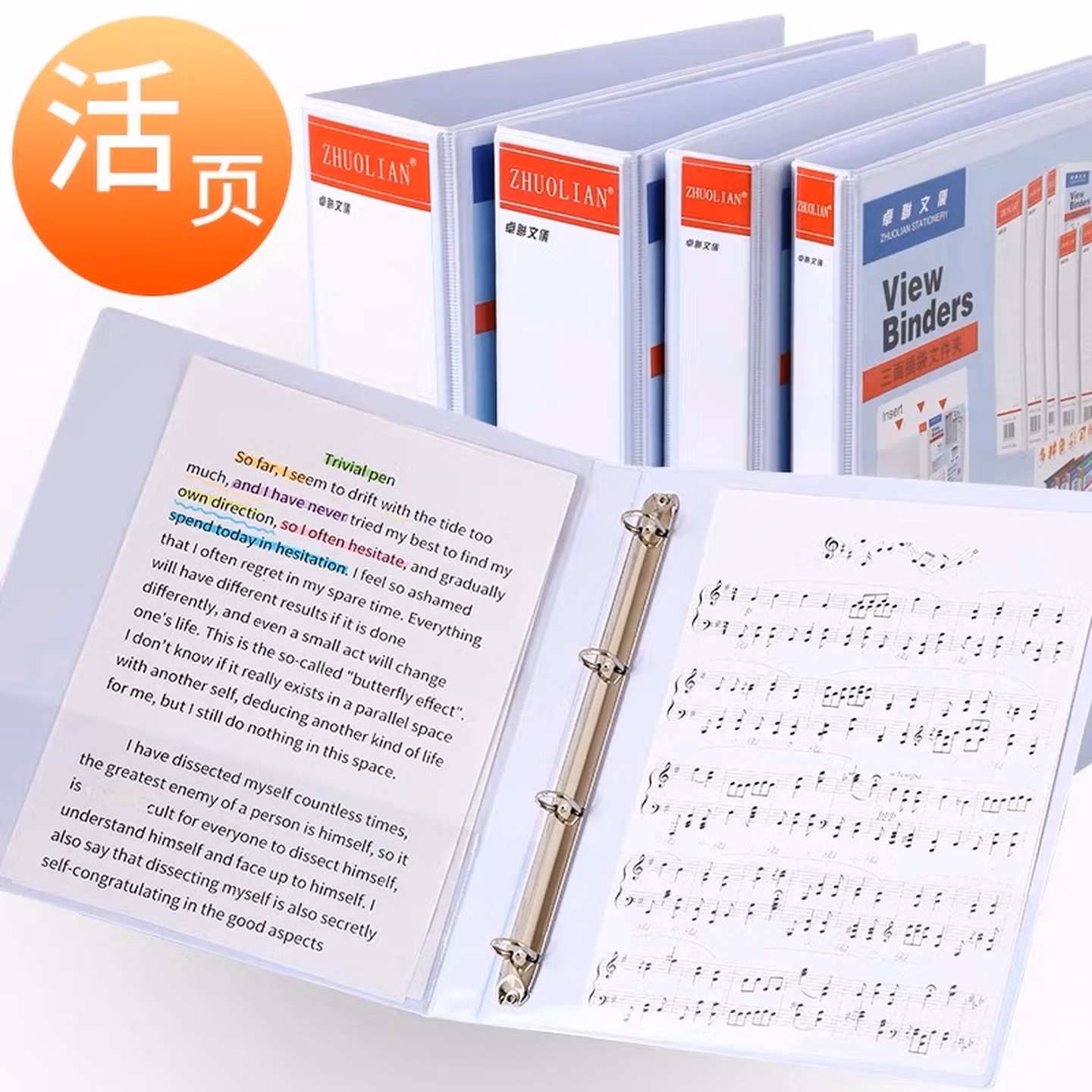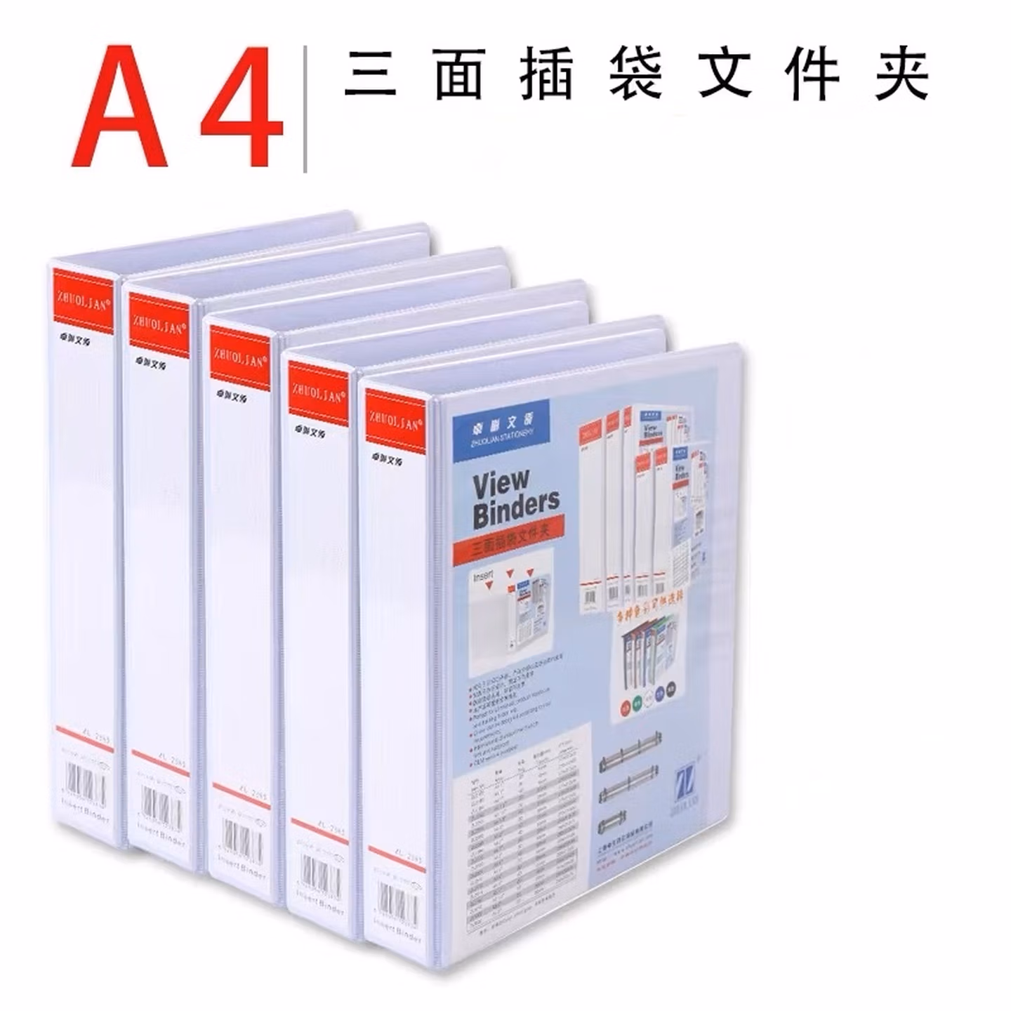 卓联ZL-2252三面插袋文件夹A4 38mm加插封面打孔白夹 两孔D型夹 二孔文件夹容纸量25mm 白色