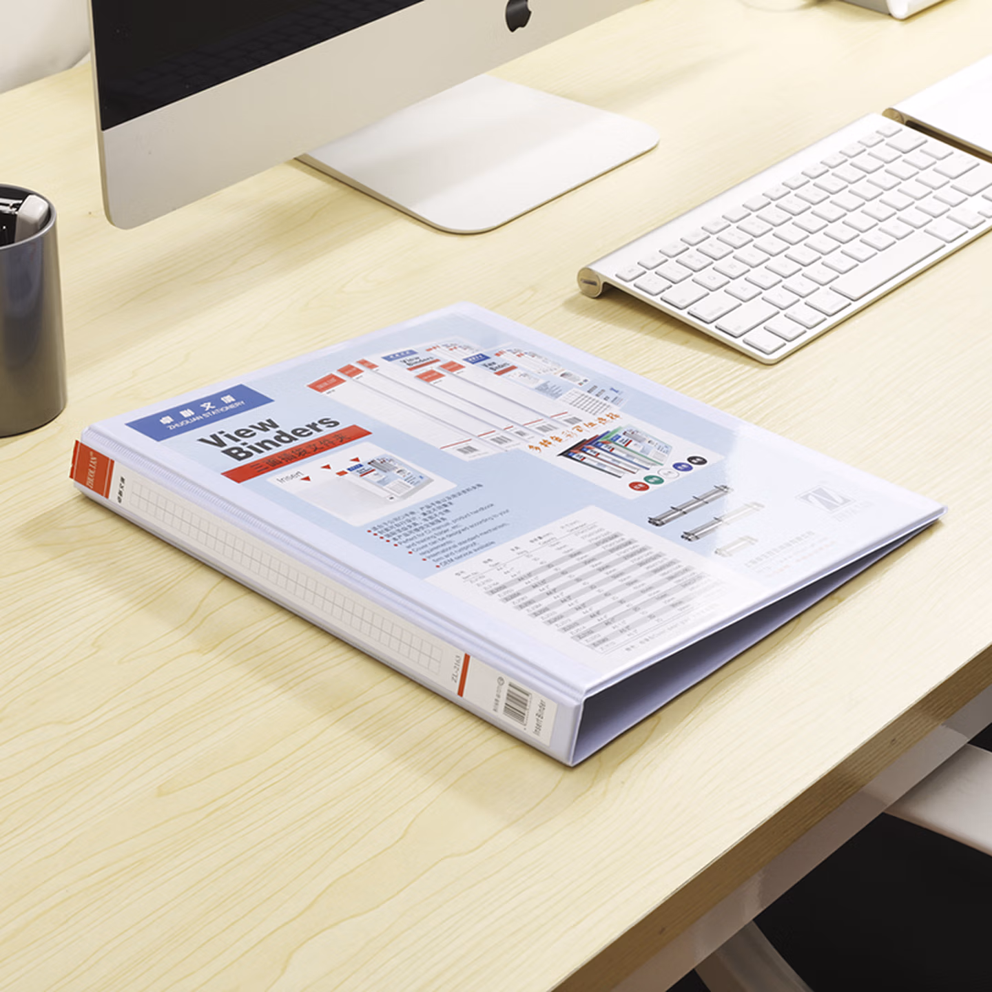 > 卓联ZL-2254三面插袋文件夹A4 38mm加插封面打孔白夹 四孔D型夹 容纸量25mm 珍珠白 1个