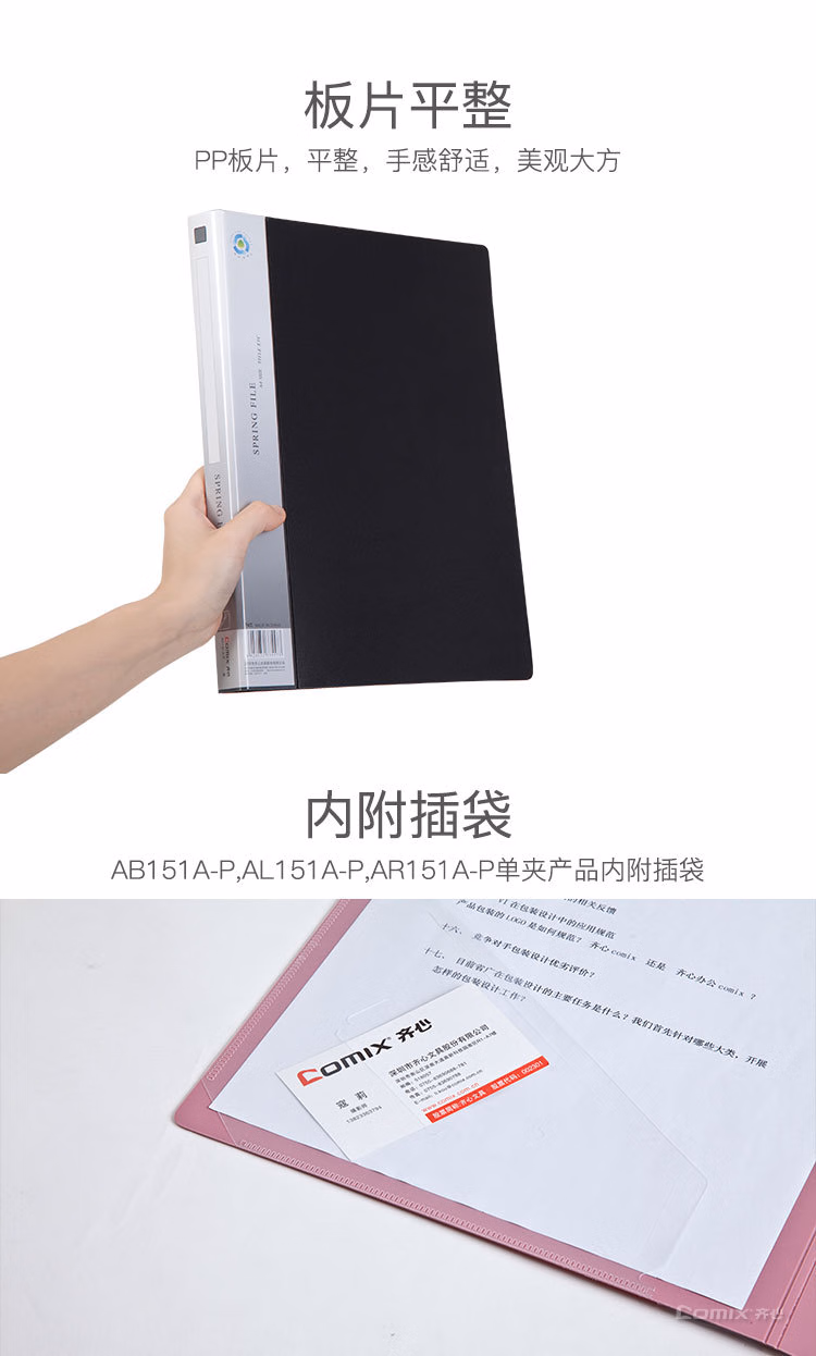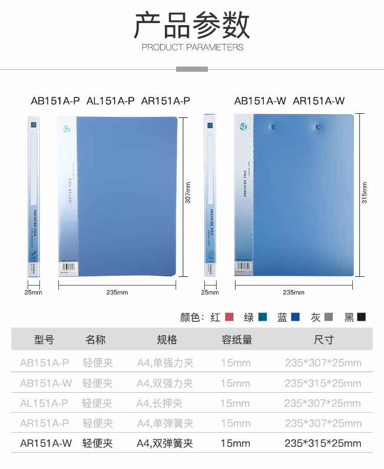 > 齐心AR151A-W坚固轻便夹A4双弹簧夹加厚打孔文件夹 AR151A/P单弹簧夹 蓝色