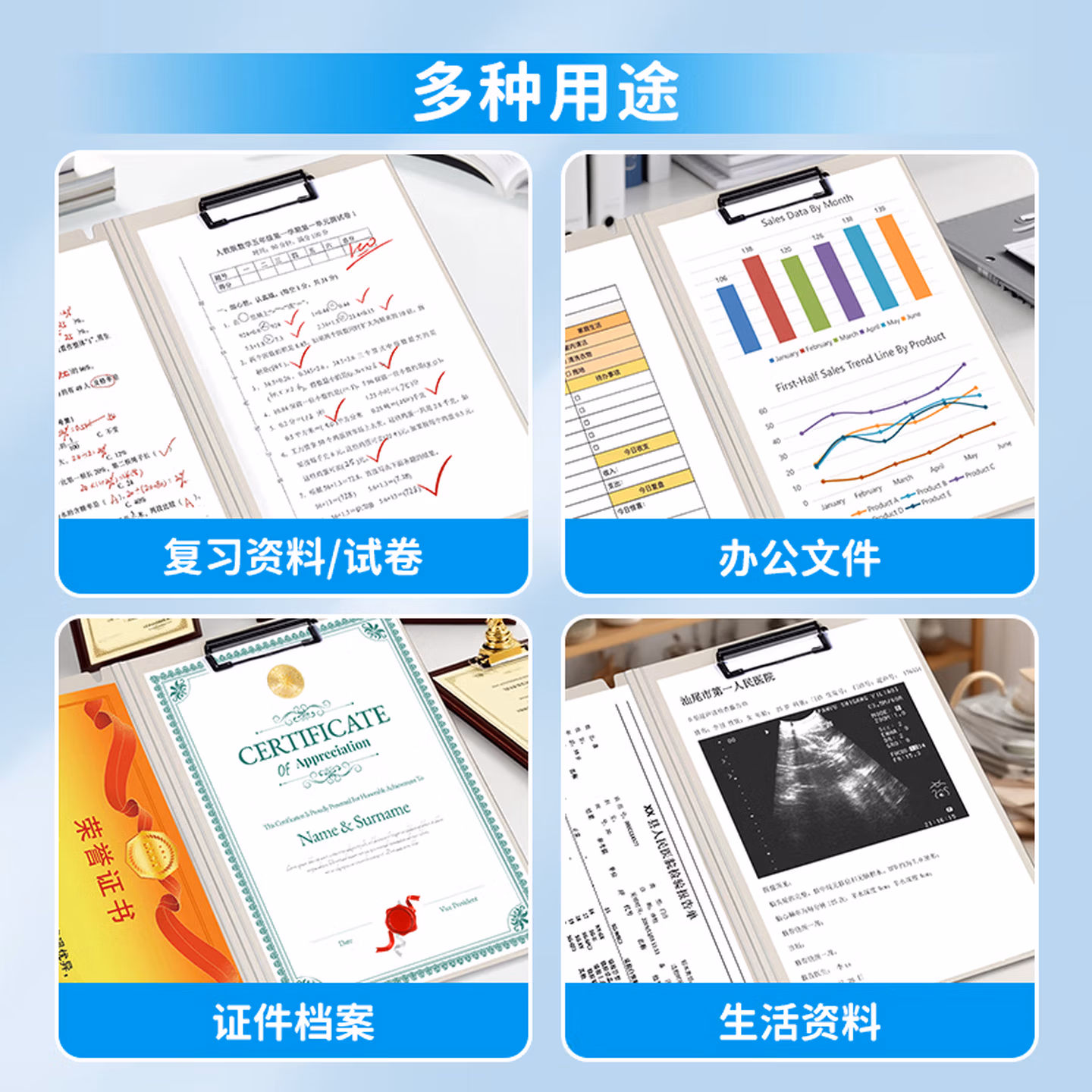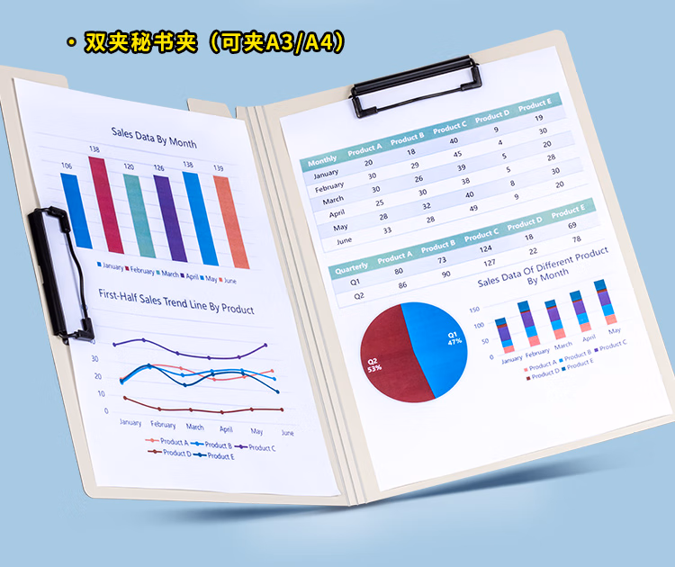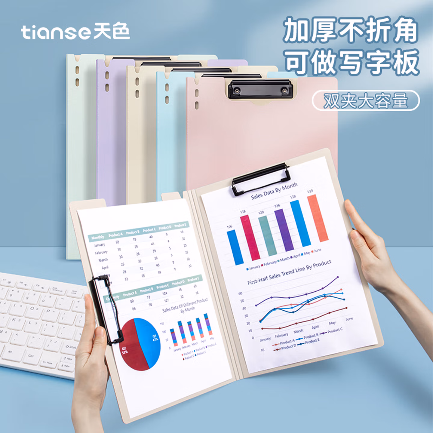 > 天色 5个A4文件夹夹板 双夹板夹会议夹秘书夹资料夹试卷夹签字签约呈阅夹 办公用品 TS-10007 混色