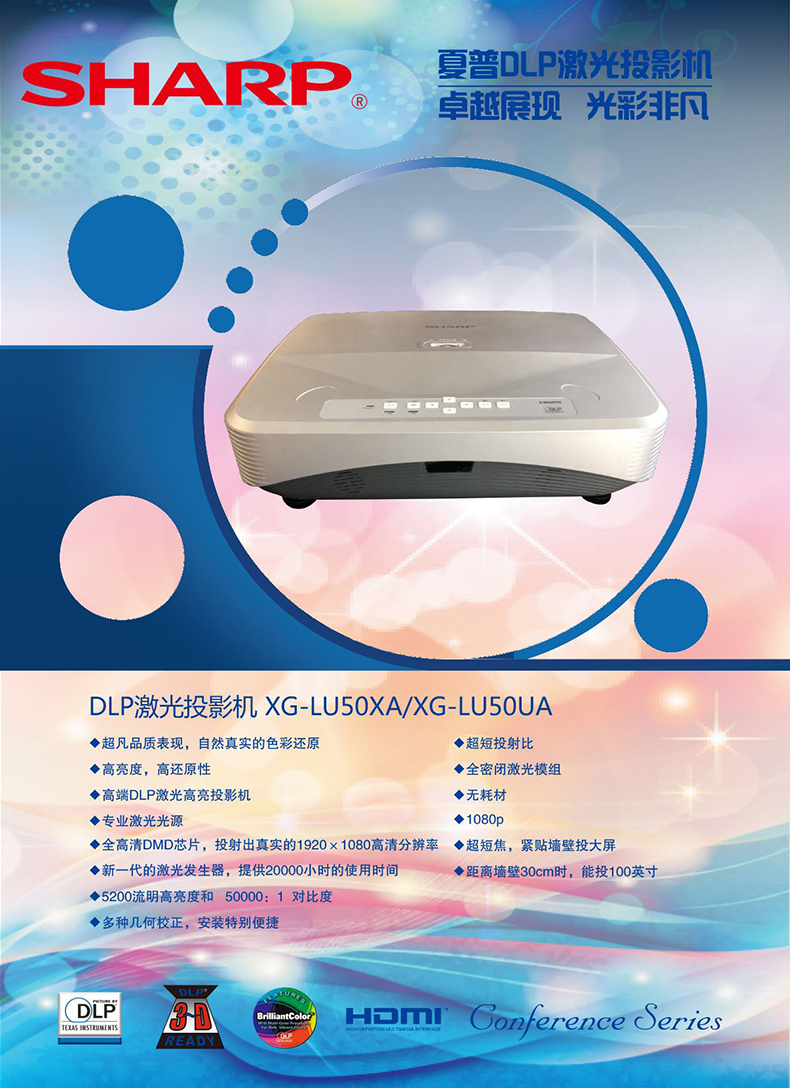 > 夏普 Sharp XG-LU50UA 1080P家庭影院 商用办公超高清超短焦激光投影机(1080P 5200流明)